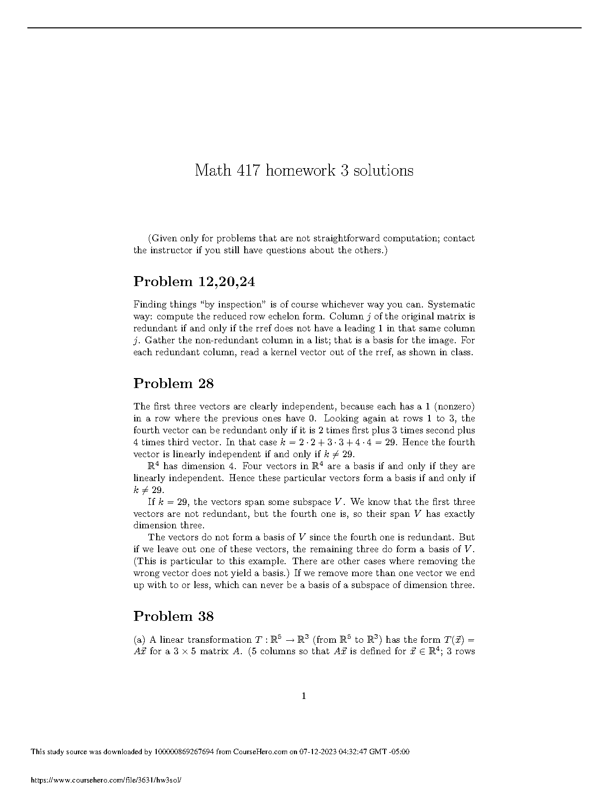 Math 417 Homework 3 Solutions - Edition 2023 - 2024 - Pass Your Exams on the First Attempt