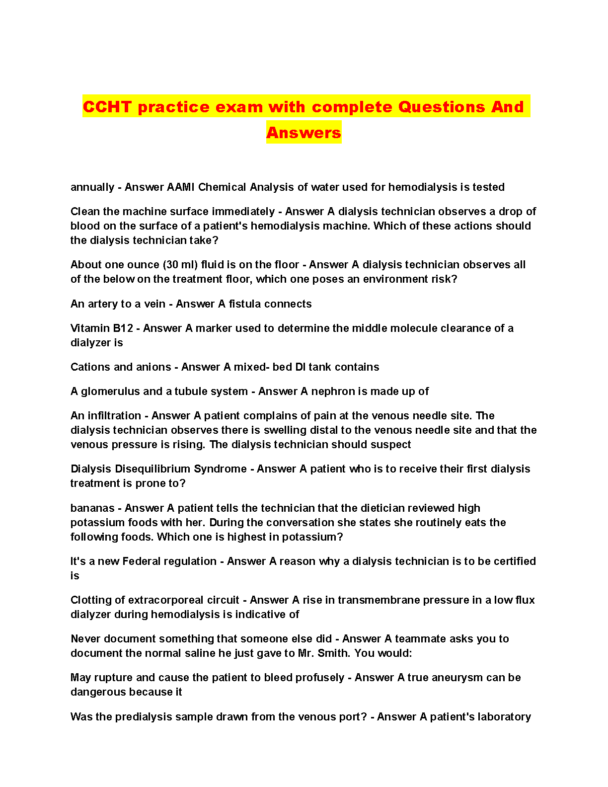 CCHT Practice Exam with Complete Questions and Answers 2024/2025 Edition - Pass Your CCHT Exam on the First Try