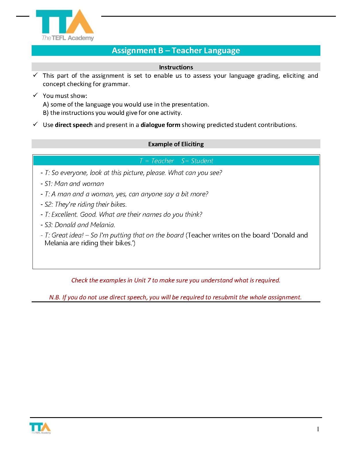 The TEFL Academy, Assignment B - Teacher Language: A Guide to Mastering Direct Speech and Eliciting Techniques for Effective Teaching