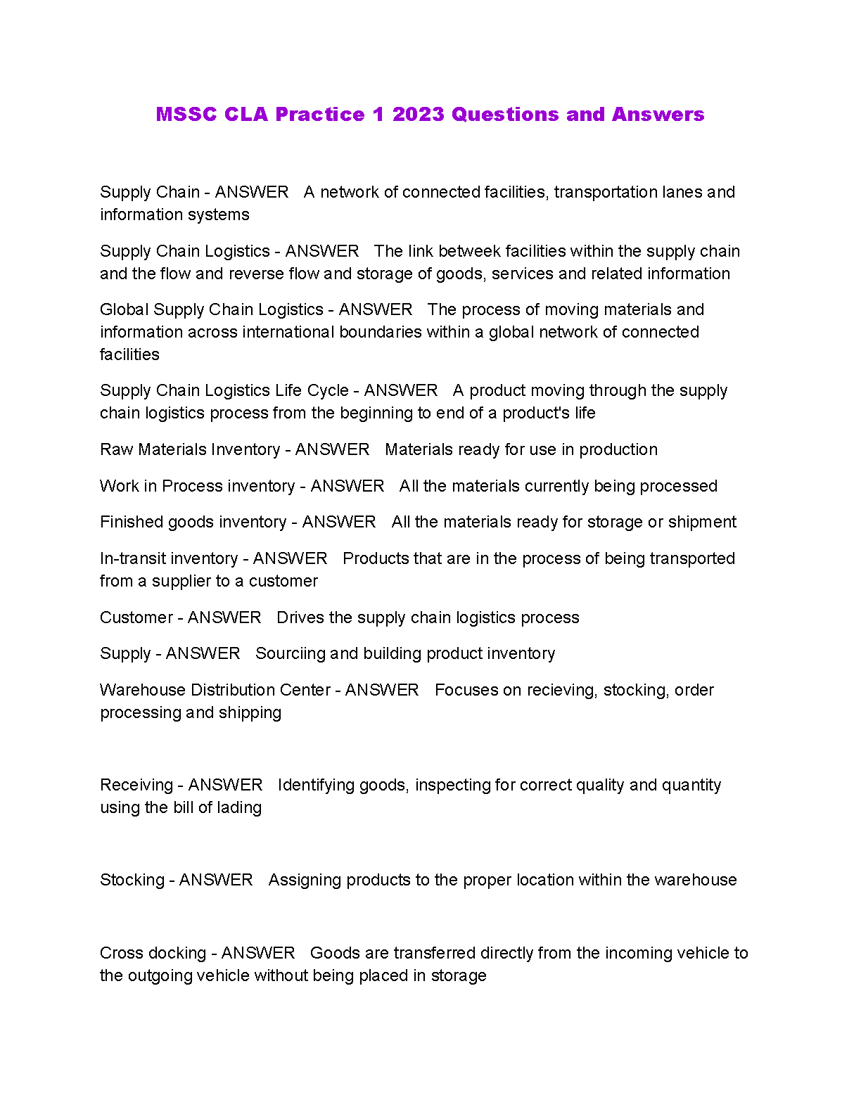 MSSC CLA Practice 1 2023 Questions and Answers: Ace Your Exam and Avoid Resits