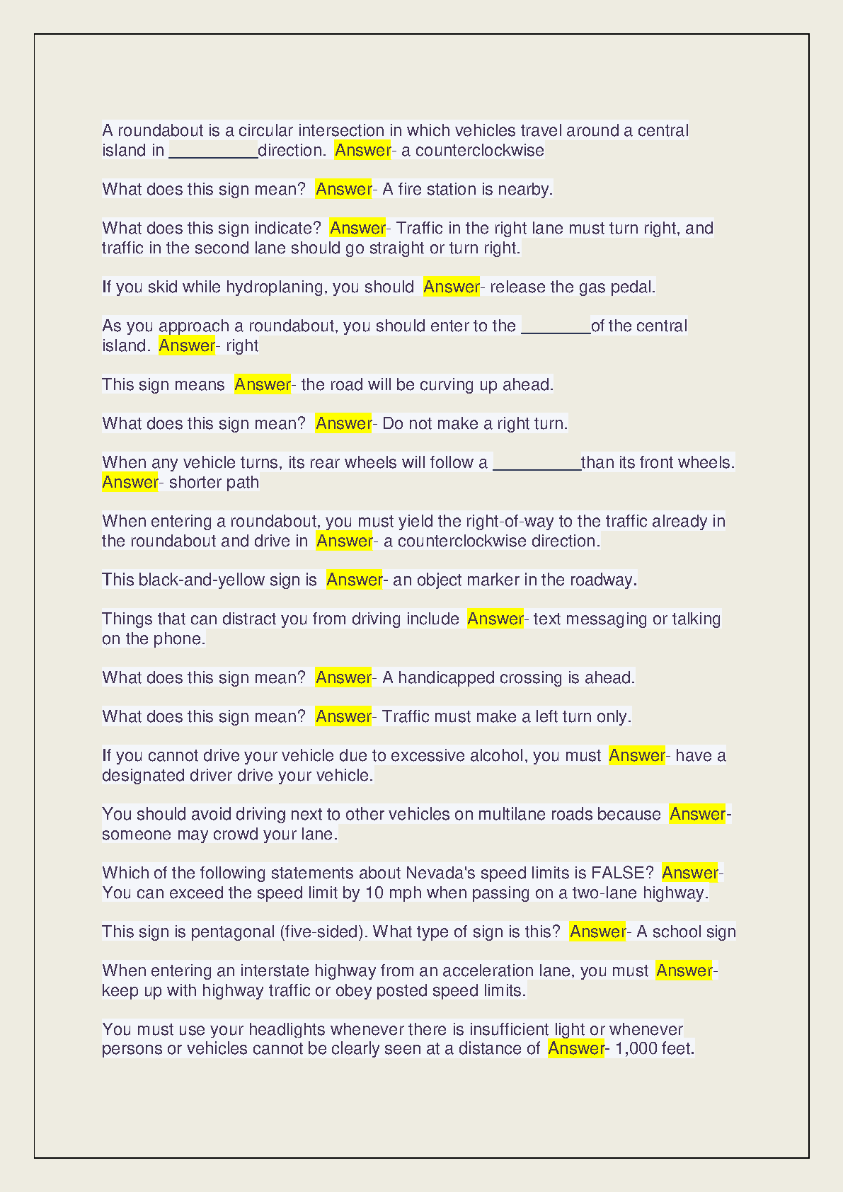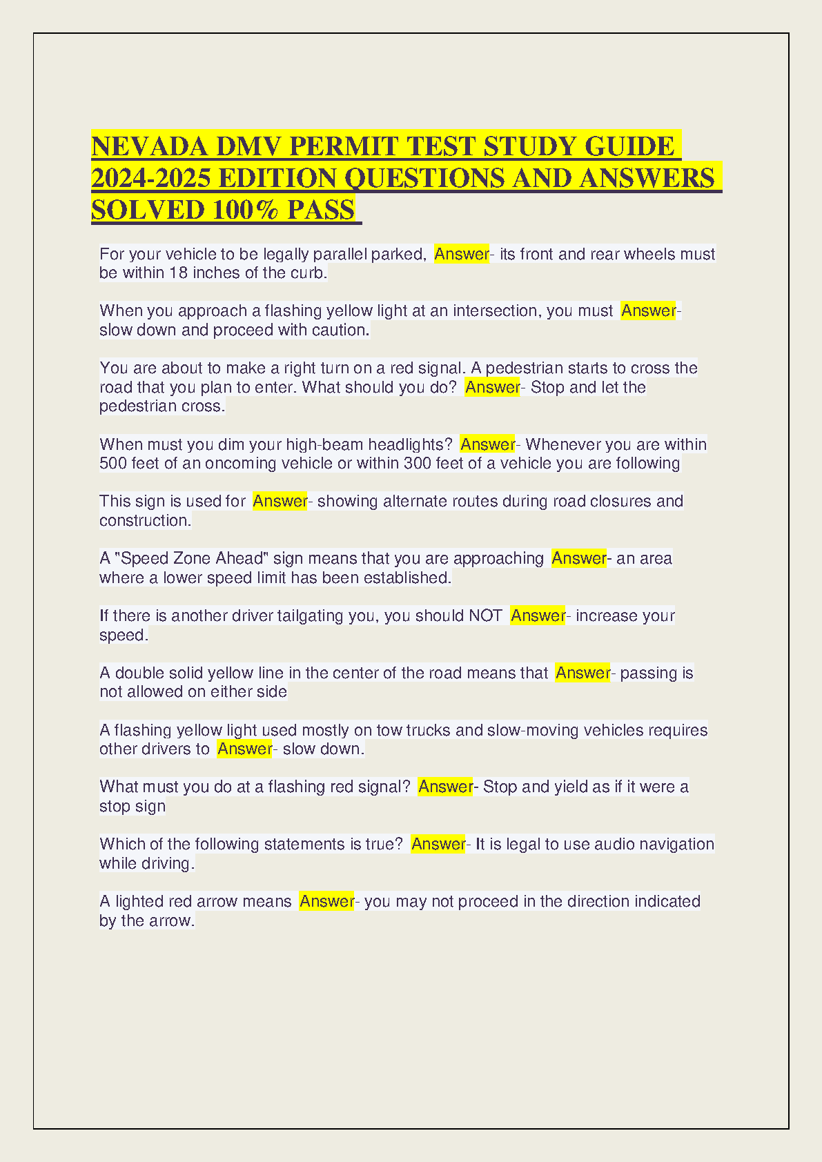 NEVADA DMV PERMIT TEST STUDY GUIDE 2024-2025 EDITION QUESTIONS AND ANSWERS SOLVED 100% PASS