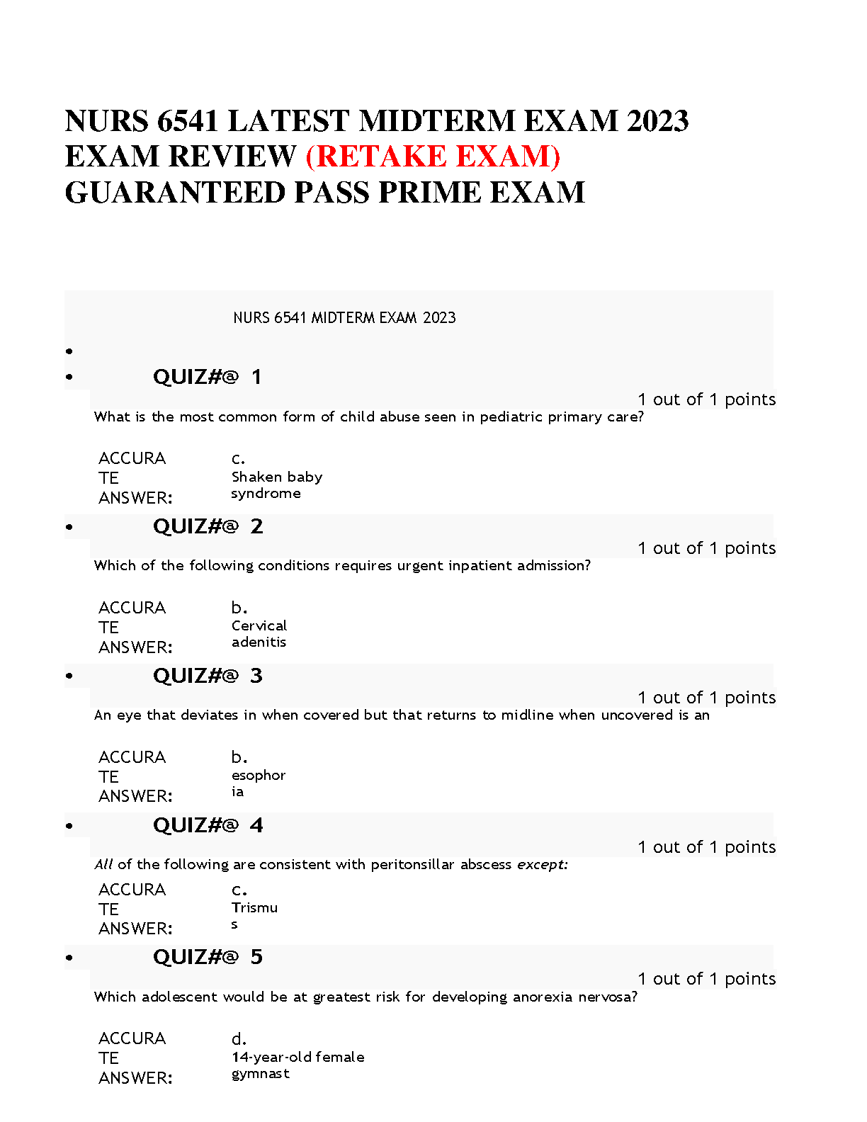 NURS 6541 Latest Midterm Exam 2023 (Retake Exam) - Guaranteed Pass Prime Exam - by [Author Name]