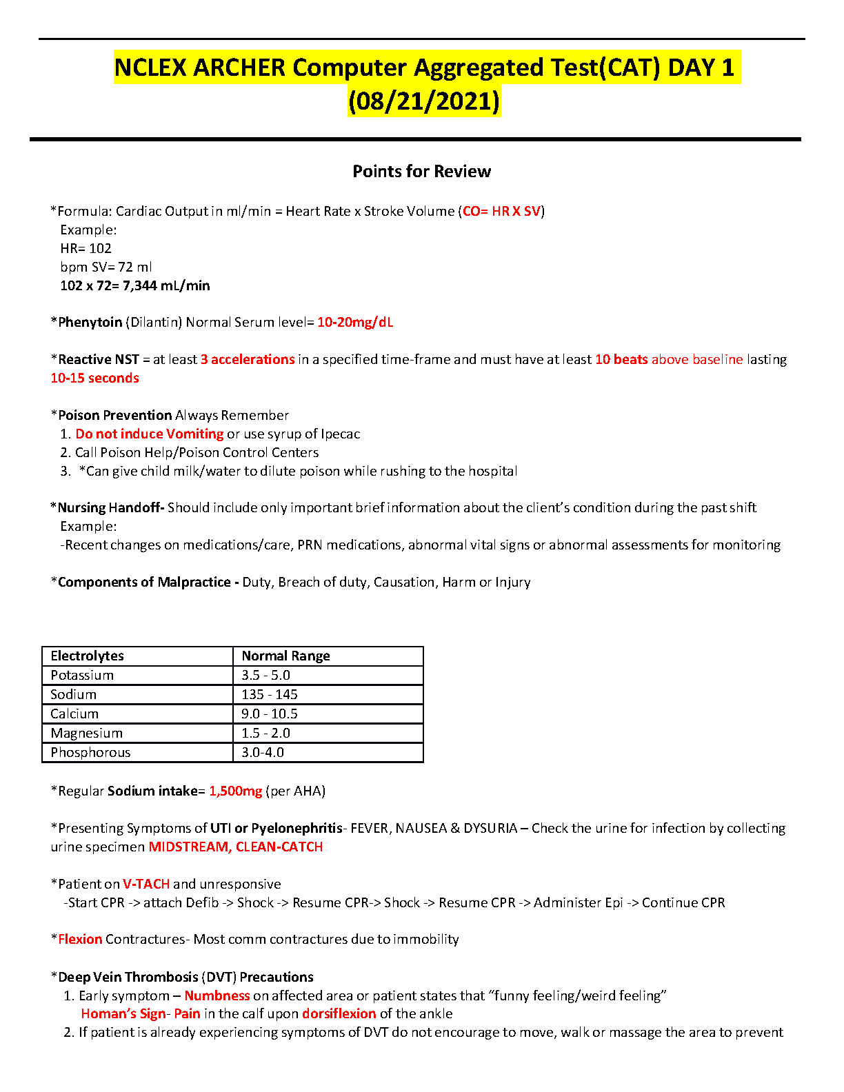 Ace your NCLEX-RN exam on the first attempt with this comprehensive review guide covering key topics like Cardiac Output calculation, Poison Prevention, Nursing Handoff, Components of Malpractice, Electrolytes, Deep Vein Thrombosis (DVT) Precautions, and more.