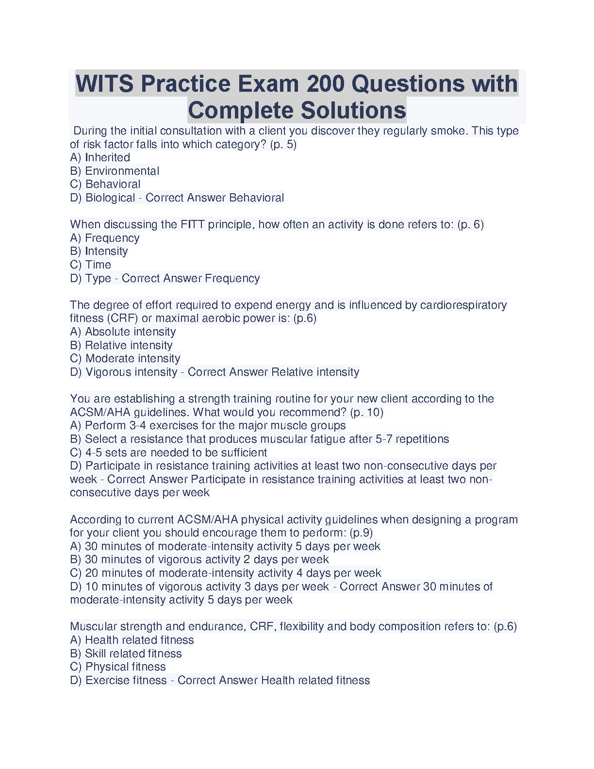WITS Practice Exam 200 Questions with Complete Solutions for 2024/2025 - Ace Your Exams on the First Attempt!