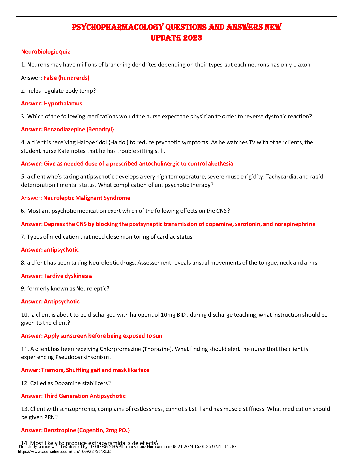 Psychopharmacology Questions and Answers New Update 2023 - By Dr. Linda Papadopoulos and Dr. Mary Ellen (M.E.) Trotter