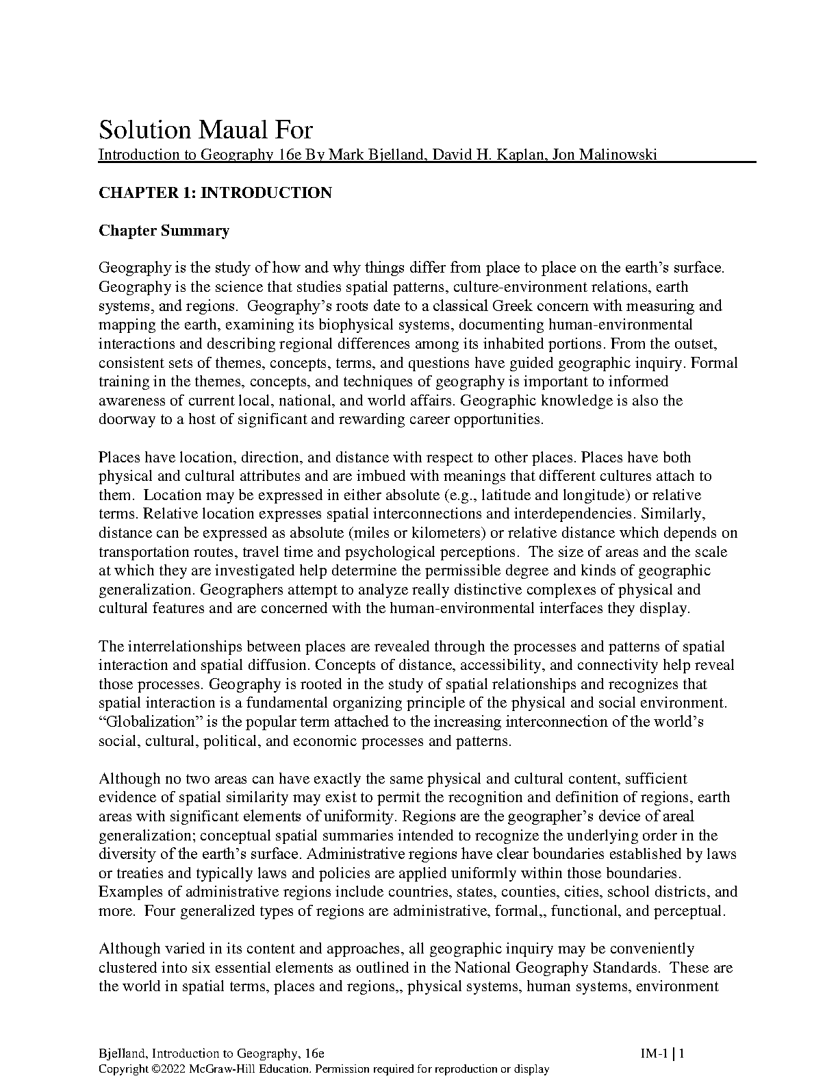 Unlock the secrets of geography with this comprehensive guide to the 16th edition of "Introduction to Geography" by Mark Bjelland, David H. Kaplan, and Jon Malinowski. Designed for students aiming to ace their geography exams on the first attempt, this resource is packed with detailed explanations, real-world examples, and engaging visuals. Master the key concepts, explore essential geographic theories, and gain a deeper understanding of our dynamic world.