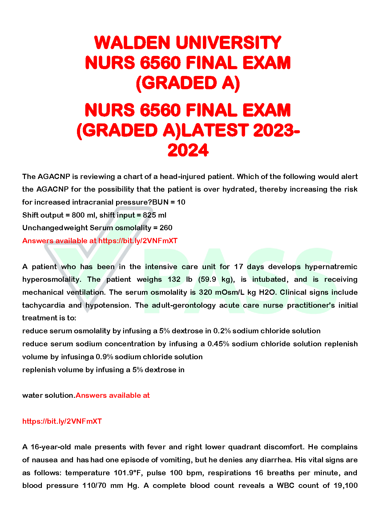 Walden University NURS 6560 Final Exam (Graded A) Latest 2023-2024 - Ace Your Exams on the First Attempt