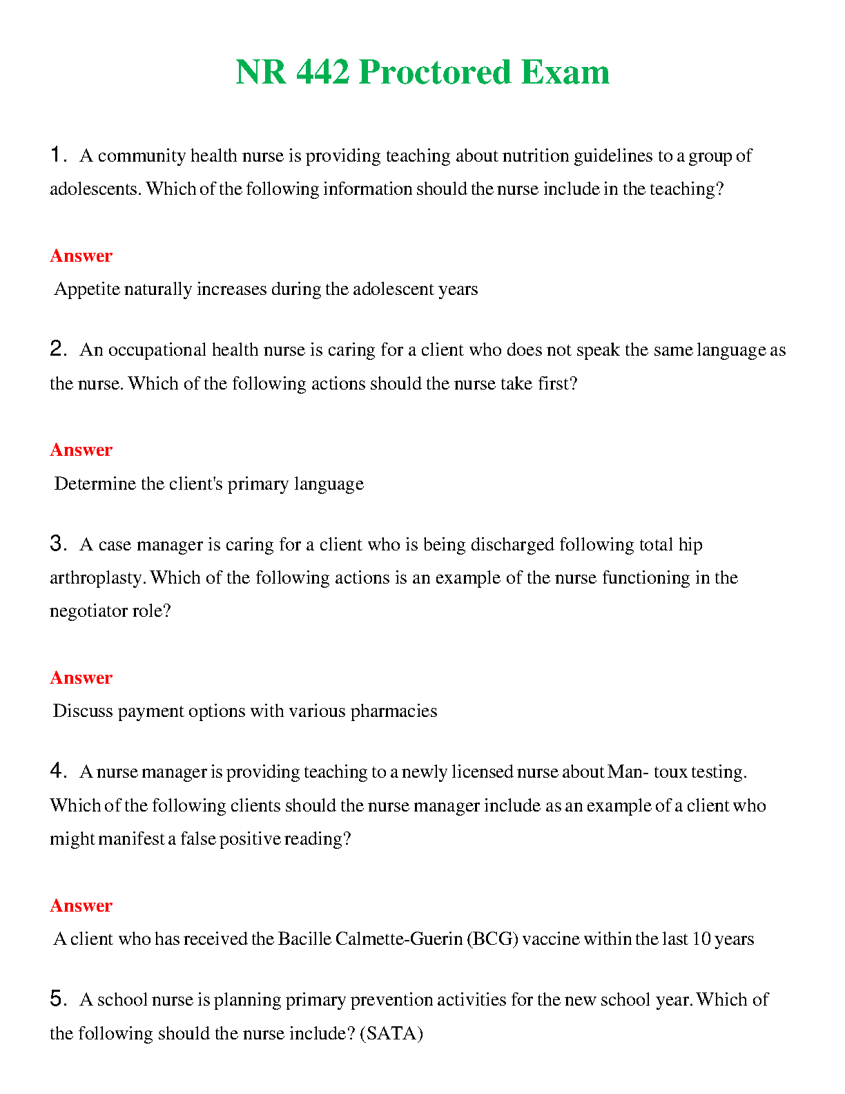 Get ready to ace your NR 442 exam on the first attempt with this comprehensive study guide. This resource includes practice questions covering key concepts and clinical scenarios to ensure you're fully prepared. Don't risk a resit, get the knowledge and confidence you need to succeed!