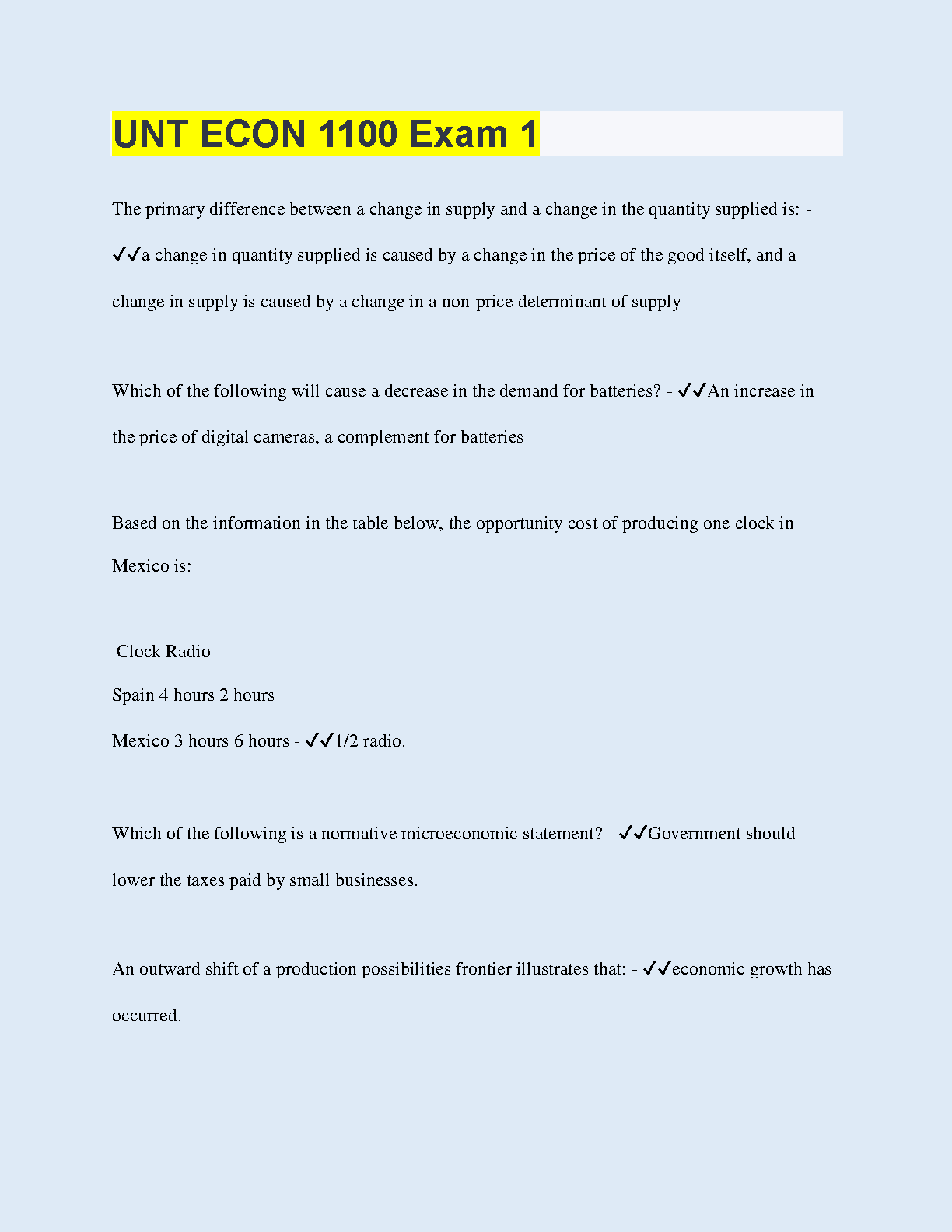 Prepare for your UNT ECON 1100 exam with this comprehensive study guide and practice questions. Cover key concepts, terminology, and examples to enhance your understanding.