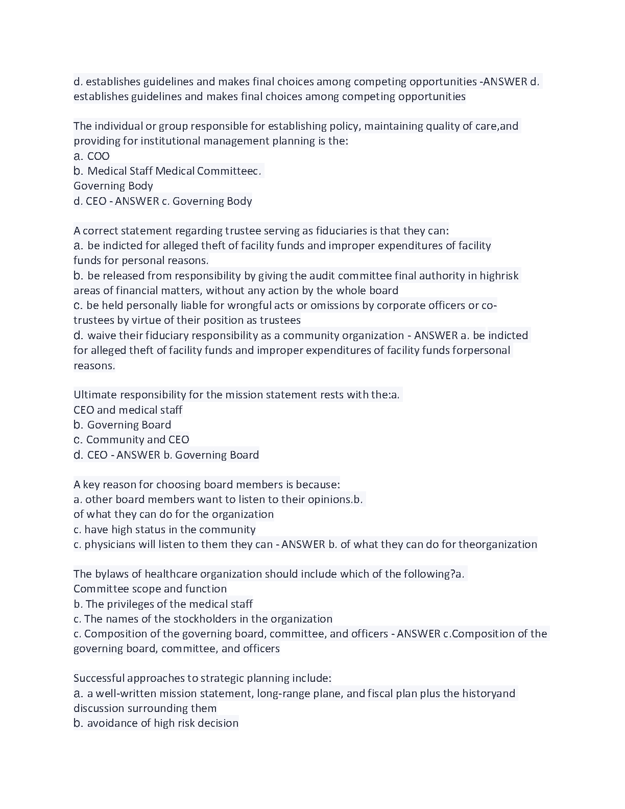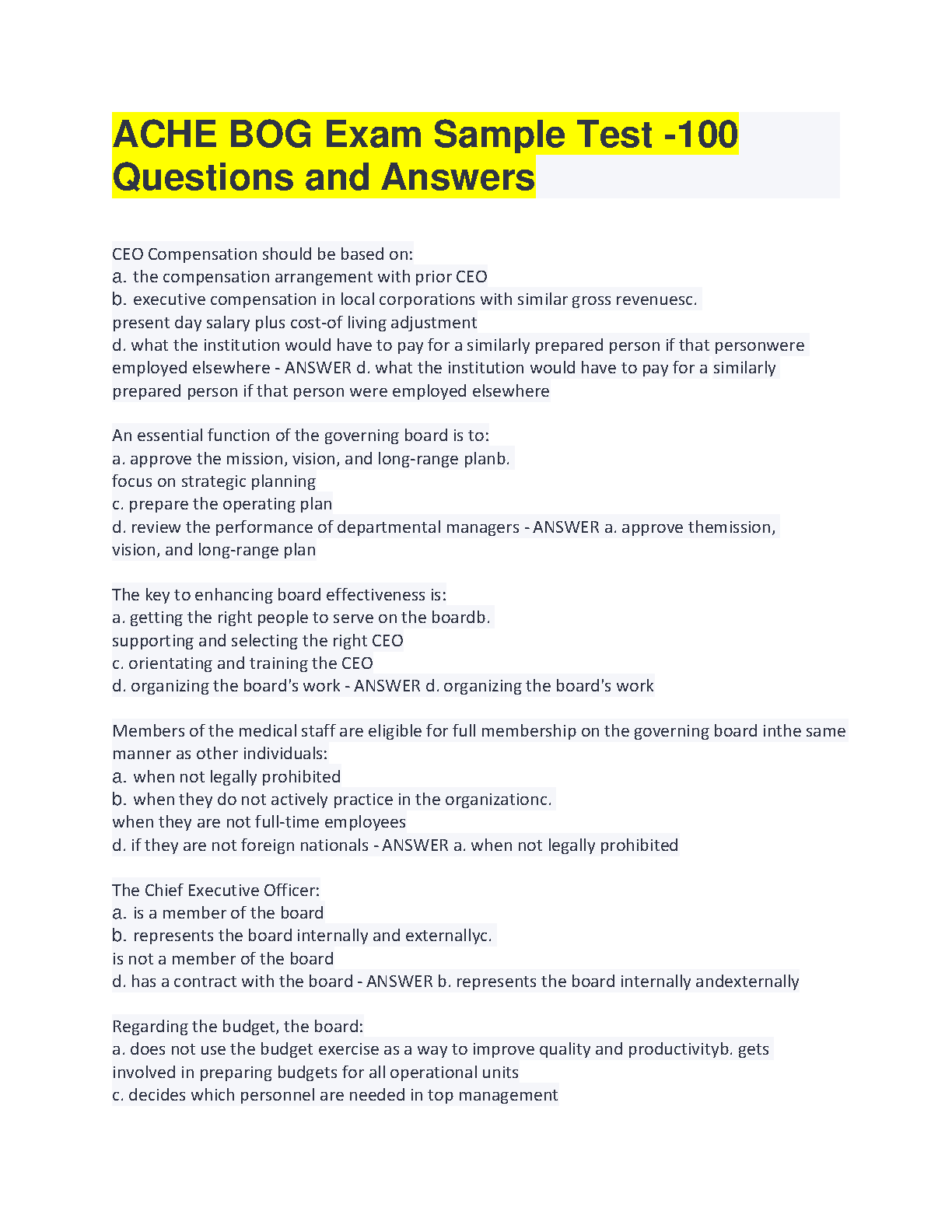 ACHE BOG Exam Sample Test -100 Questions and Answers