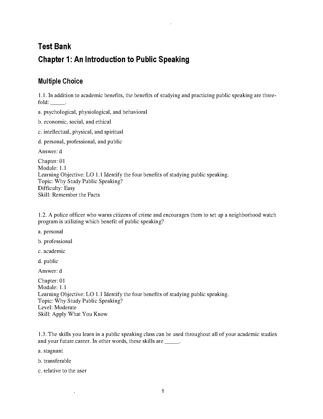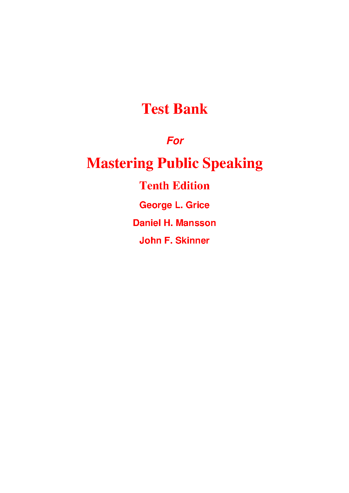 Test Bank for Mastering Public Speaking 10th Edition by George L. Grice, Daniel H. Mansson, John F. Skinner