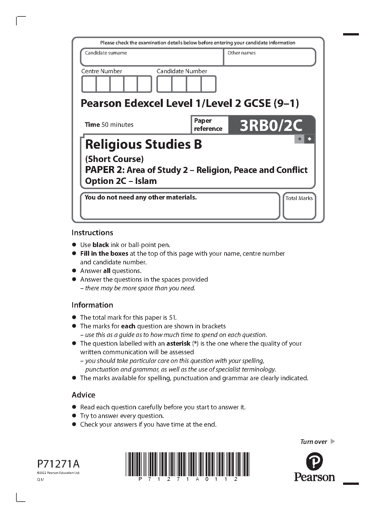 Pearson Edexcel GCSE (9-1) Religious Studies B (Short Course) Paper 2: Area of Study 2 - Religion, Peace and Conflict Option 2C - Islam - 2024/2025 Edition