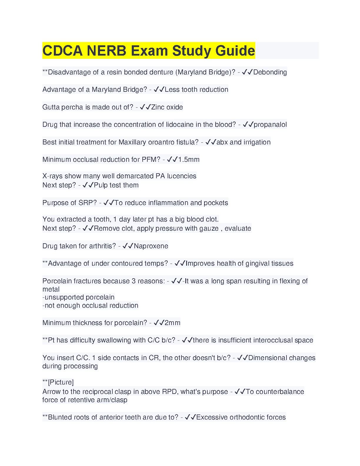 CDCA NERB Exam Study Guide LATEST UPDATE 2023