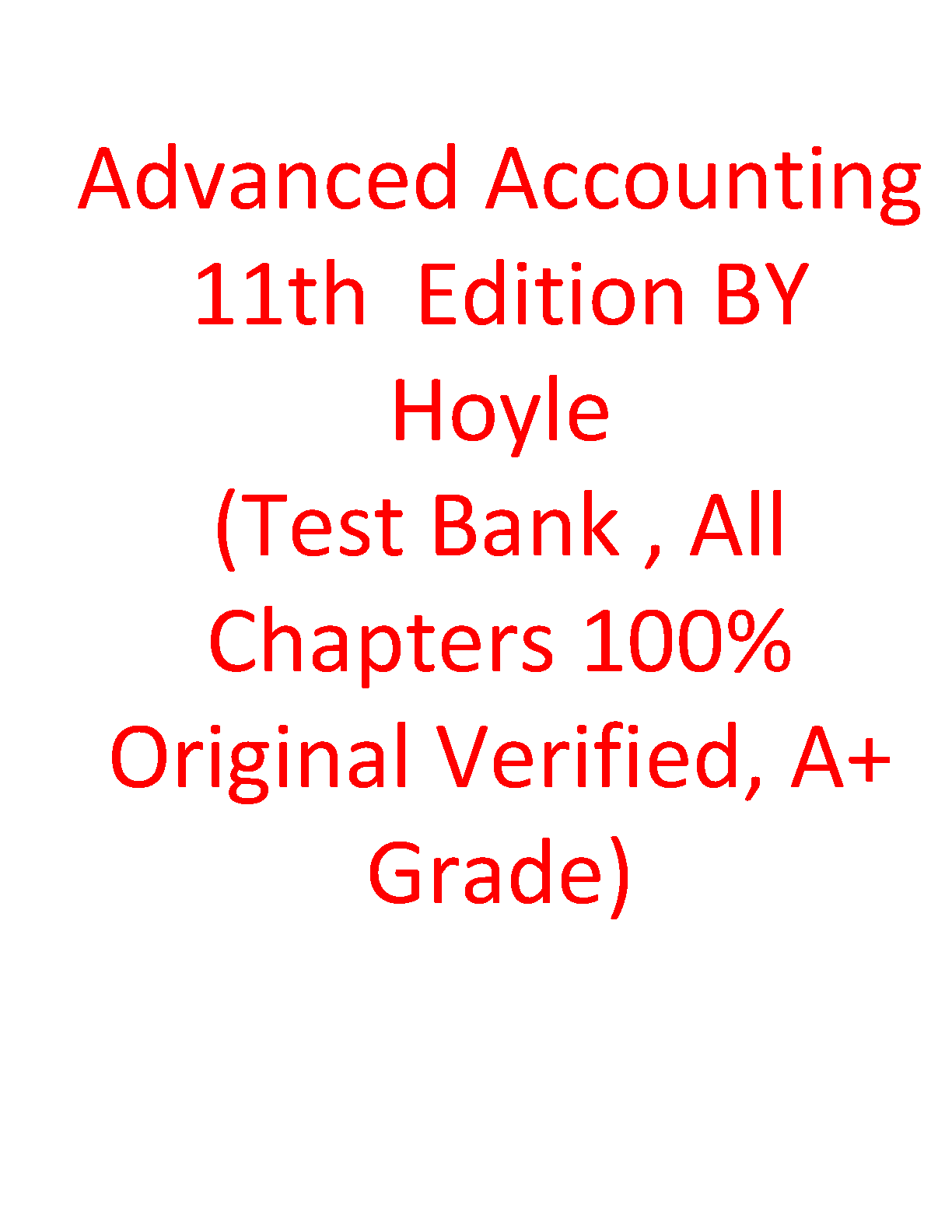 Ace your Advanced Accounting course with this comprehensive Test Bank for the 11th edition by Hoyle, Horne, and Elliott. Get access to a complete set of questions covering all chapters, meticulously verified for accuracy and quality. Prepare for your exams with confidence!