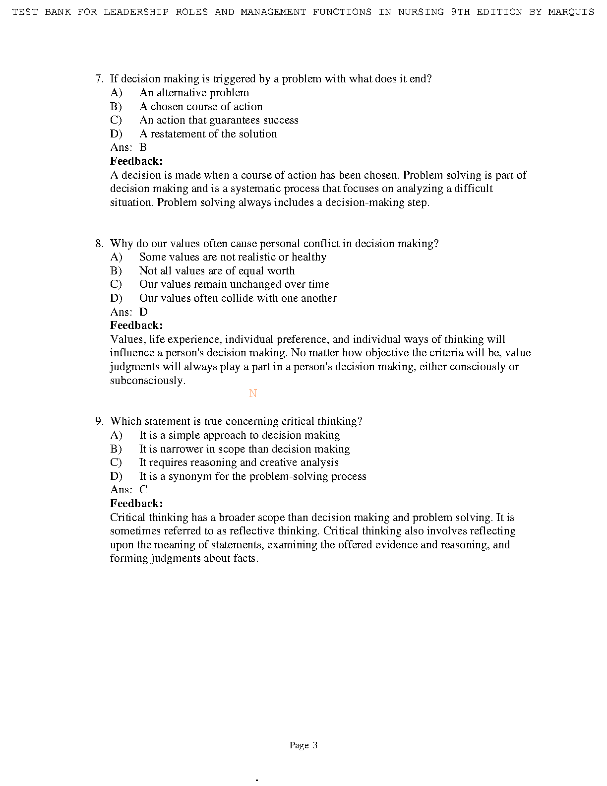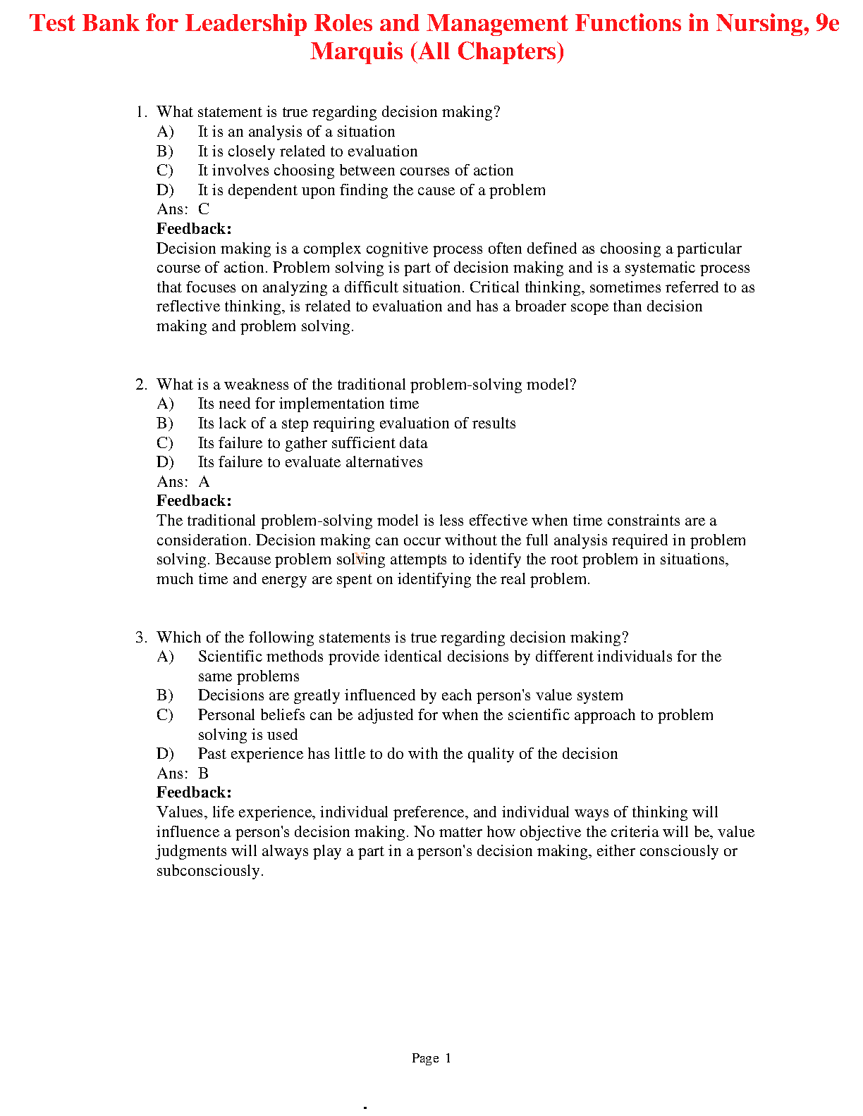Test Bank for Leadership Roles and Management Functions in Nursing, 9e - Marquis and Huston
