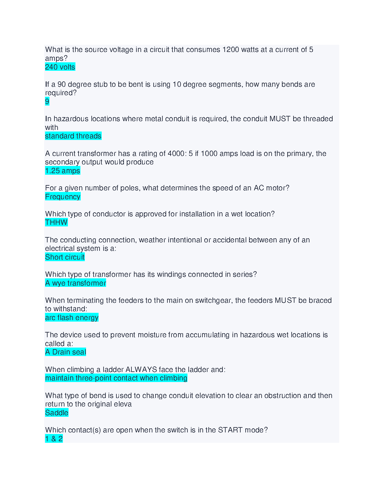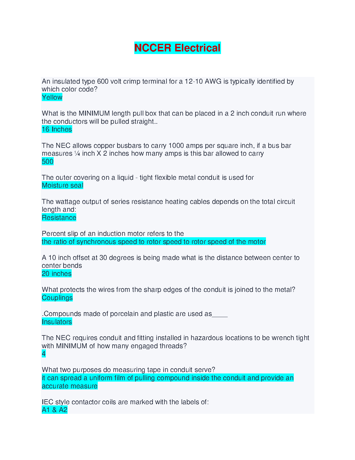 Prepare for the NCCER Electrical exam with confidence using this comprehensive set of practice questions covering key concepts and skills. Learn and reinforce important topics like conduit, wiring, and electrical safety, and get familiar with the exam format. This resource will help you pass your exam with ease!