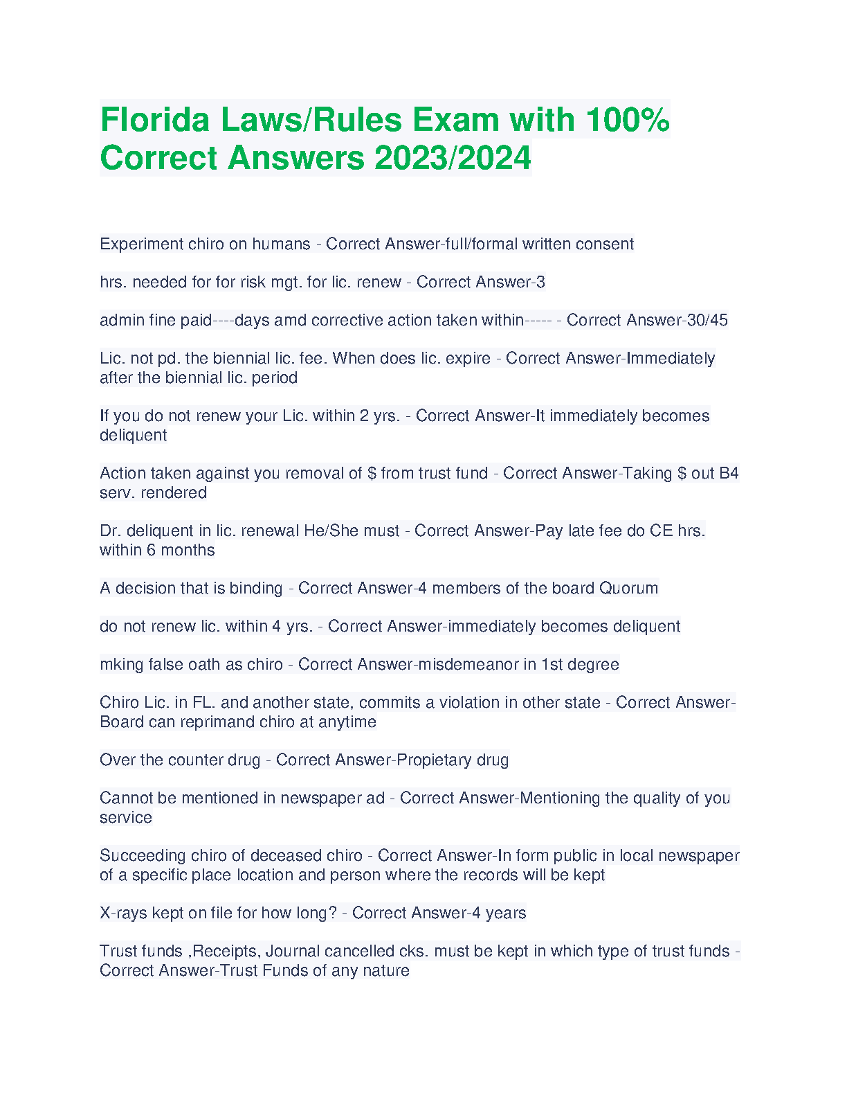 Florida Laws/Rules Exam with 100% Correct Answers 2023/2024