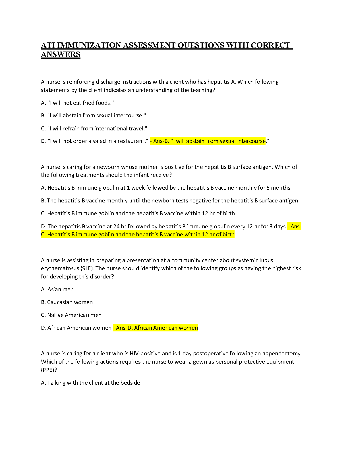 ATI IMMUNIZATION ASSESSMENT QUESTIONS WITH CORRECT ANSWERS