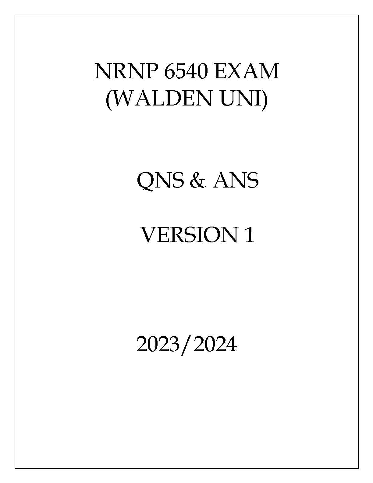 NRNP 6540 Exam (Walden University) Questions and Answers, Edition 1, 2023/2024
