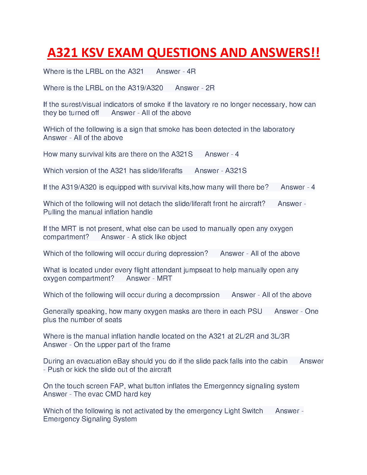 A321 KSV Exam Questions and Answers - 2024/2025 Edition - Ultimate Guide to Pass Your First Attempt