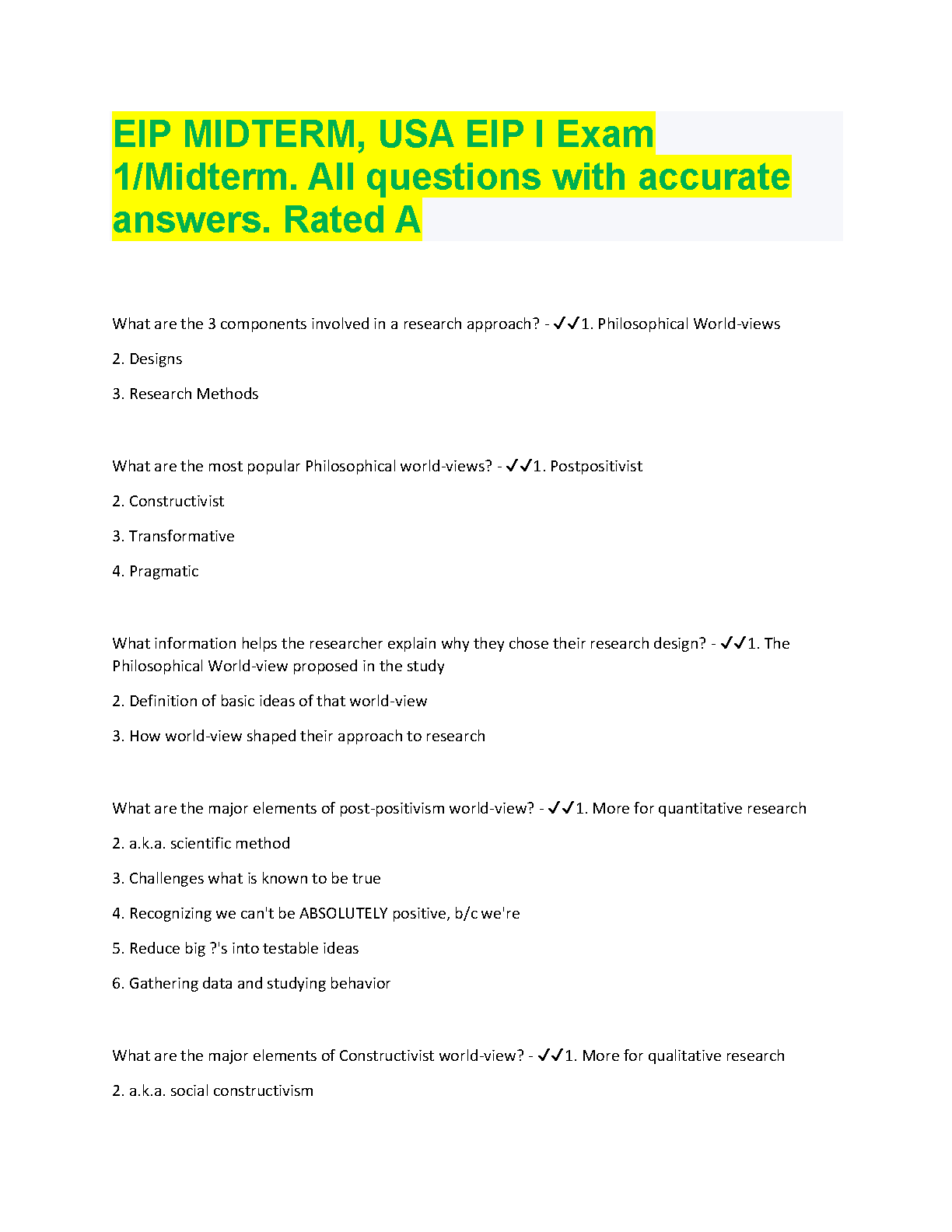 EIP MIDTERM, USA EIP I Exam 1/Midterm. All questions with accurate answers. Rated A