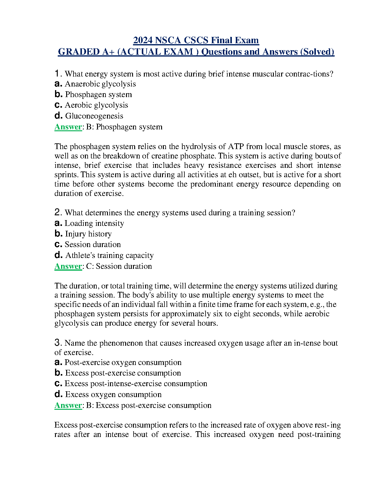 Master the NSCA CSCS Final Exam with this comprehensive study guide. This resource provides detailed answers and explanations to all exam questions, written by leading experts in the field, this guide will help you confidently pass on your first attempt and avoid resits.