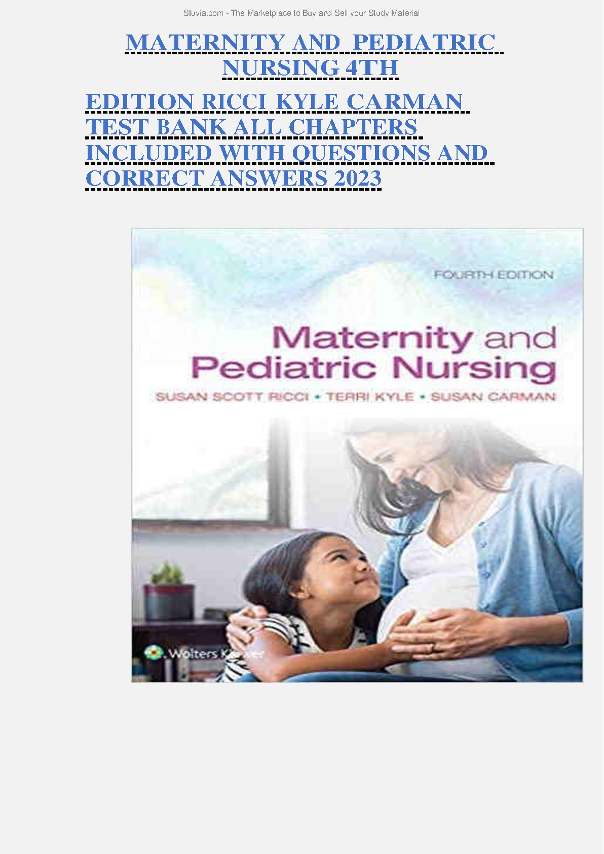 Maternity and Pediatric Nursing 4th Edition Test Bank by Susan Scott Ricci, Terri Kyle, Susan Carman
