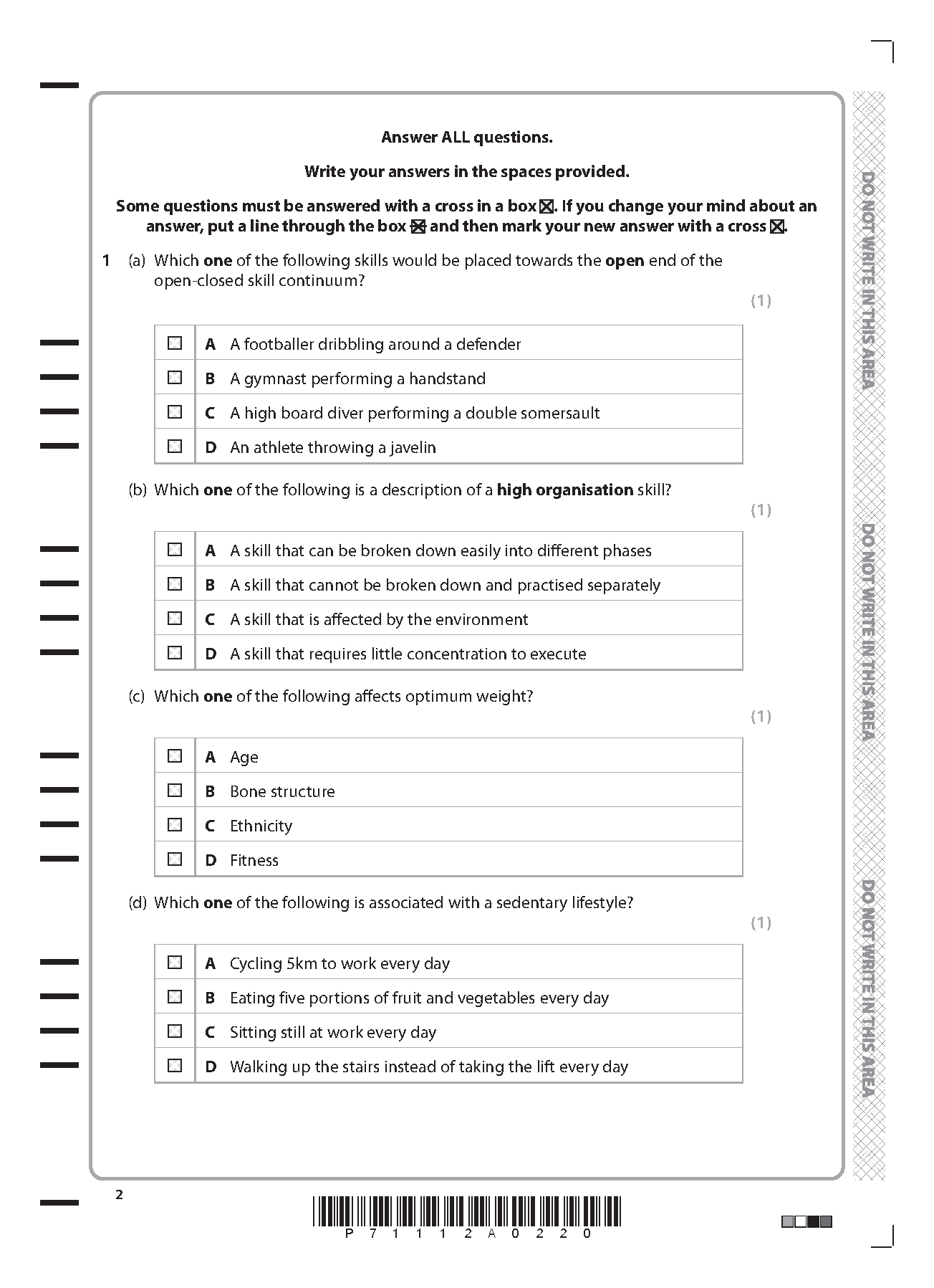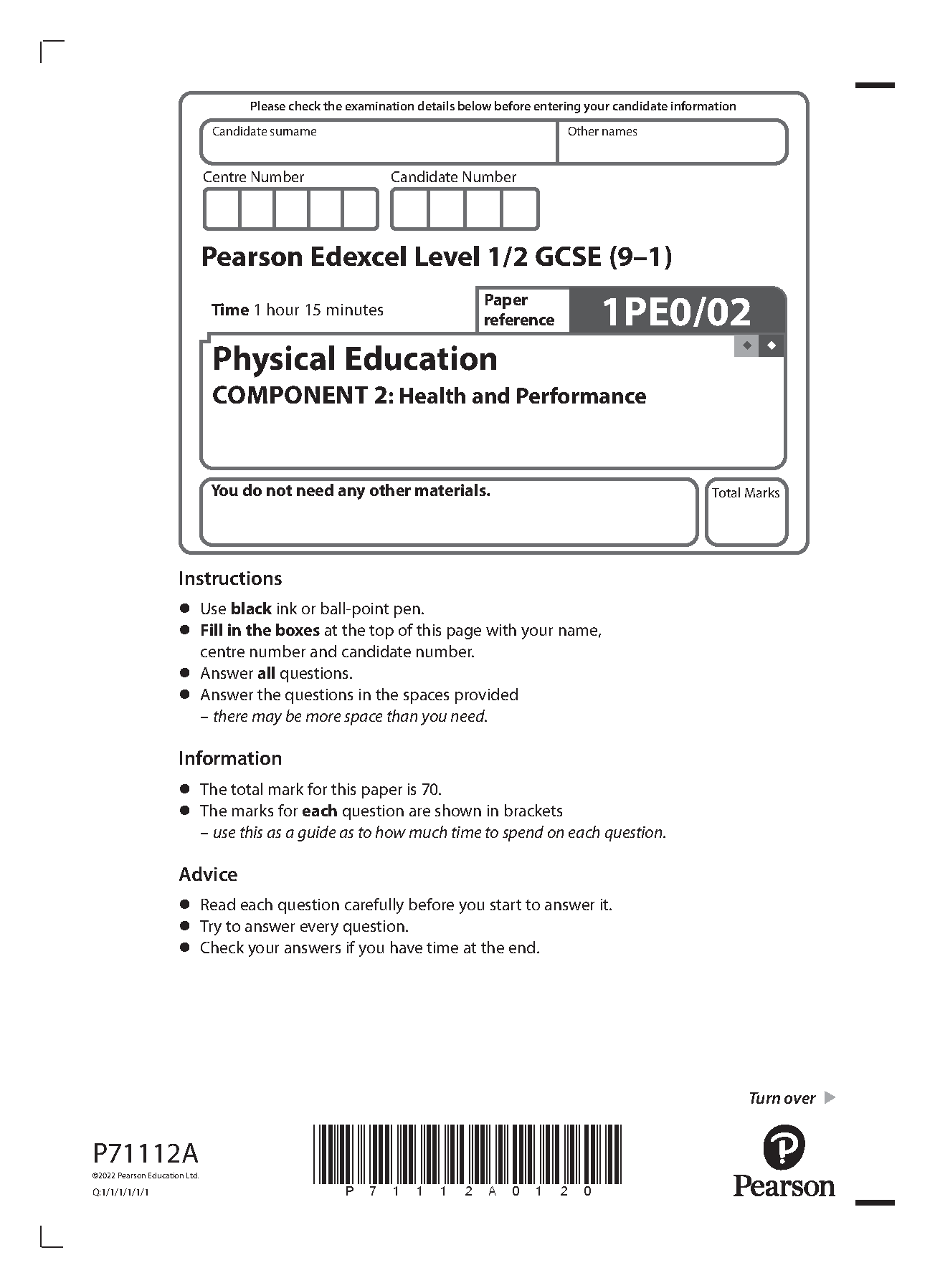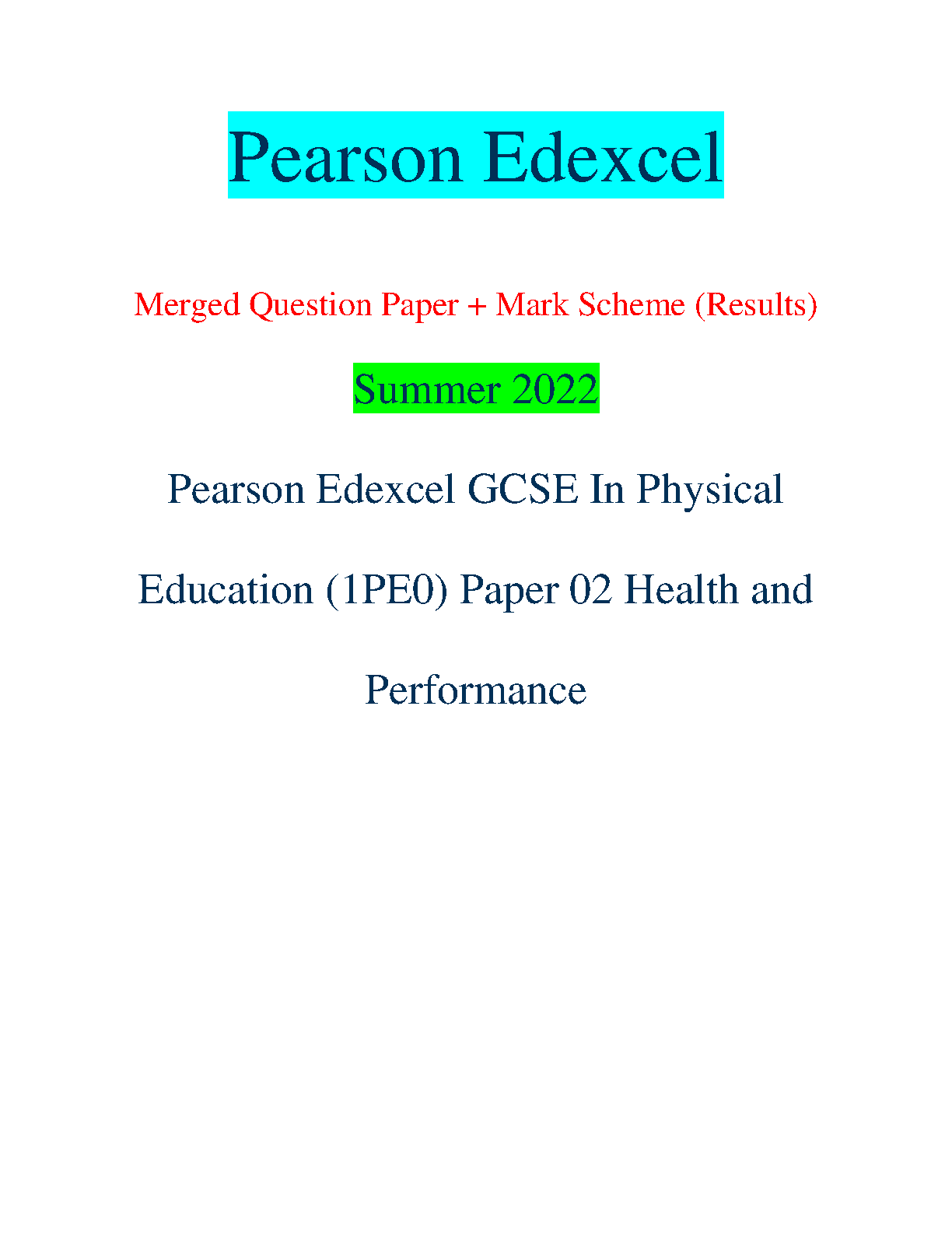 Pearson Edexcel GCSE In Physical Education (1PE0) Summer 2022 Paper 02 Health and Performance - Question Paper and Mark Scheme