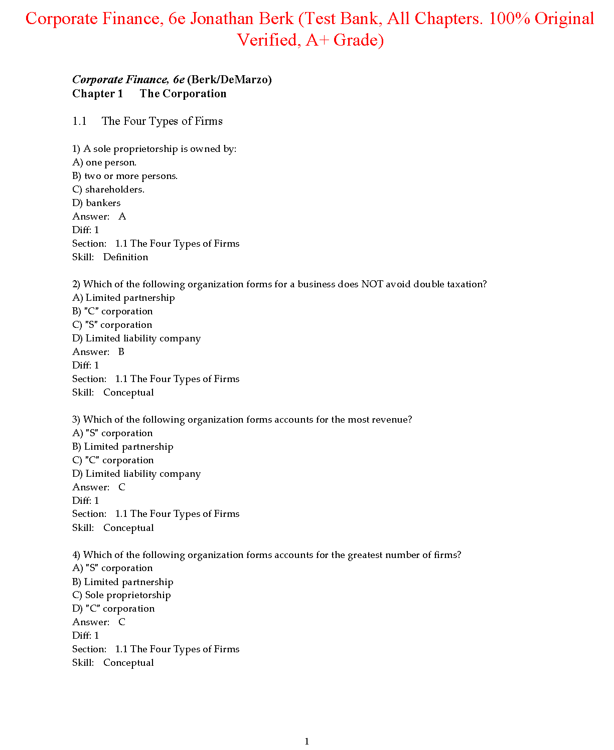 Corporate Finance 6e (Jonathan Berk, Peter DeMarzo) Test Bank - All Chapters