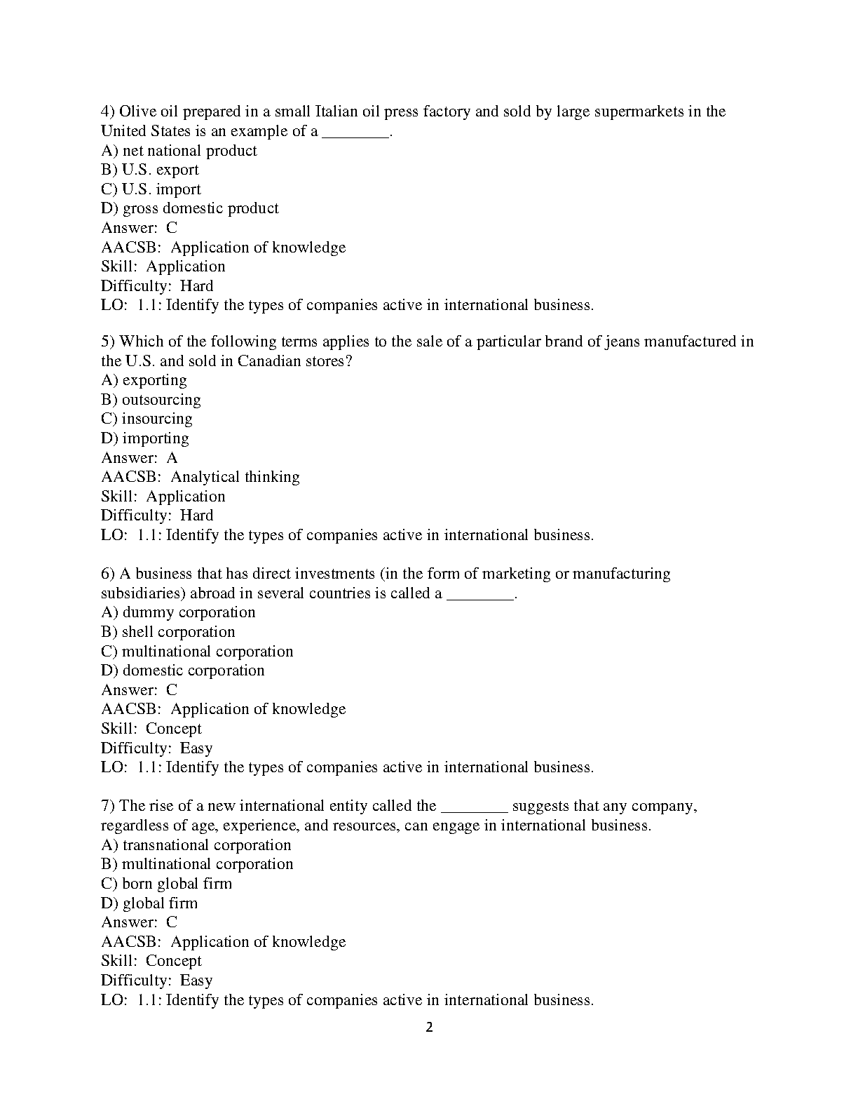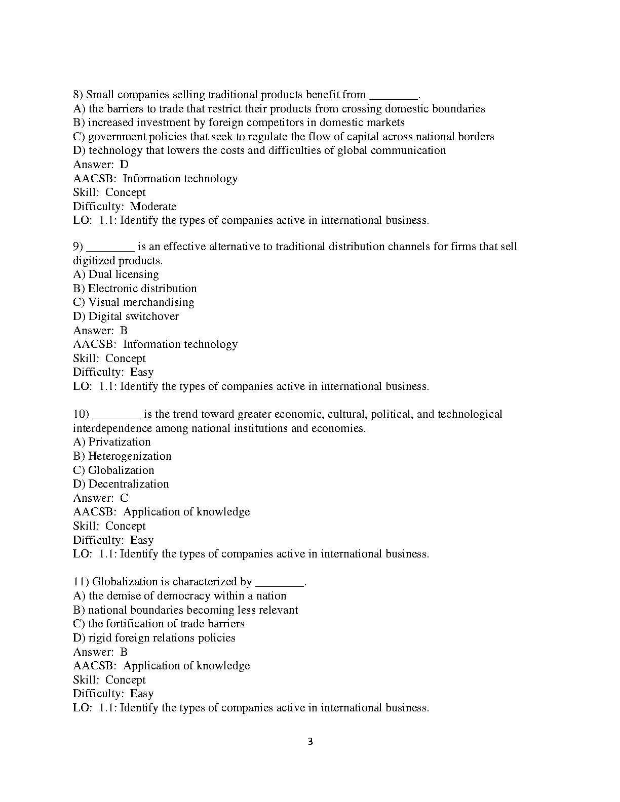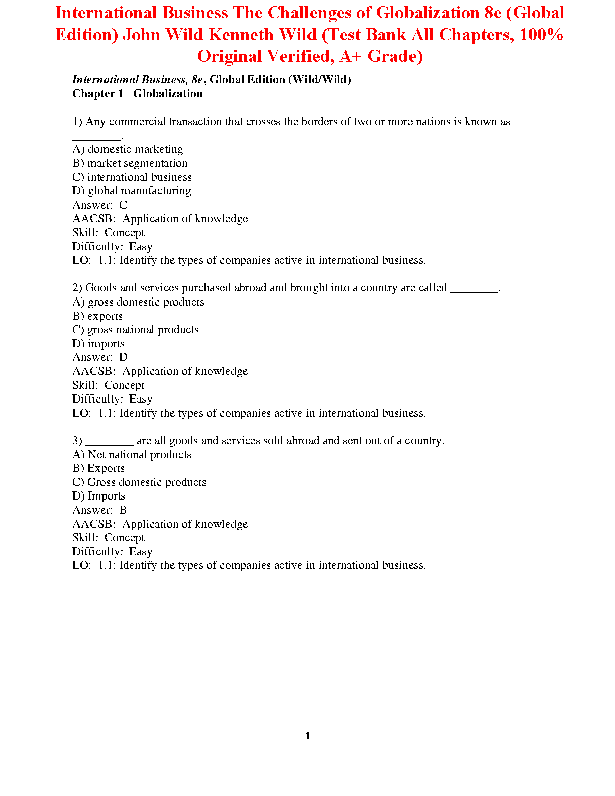 This Test Bank for International Business: The Challenges of Globalization 8e (Global Edition) by John Wild, Kenneth Wild covers all chapters of the book and is 100% original and verified. Get an A+ grade on your exams with this comprehensive resource.
