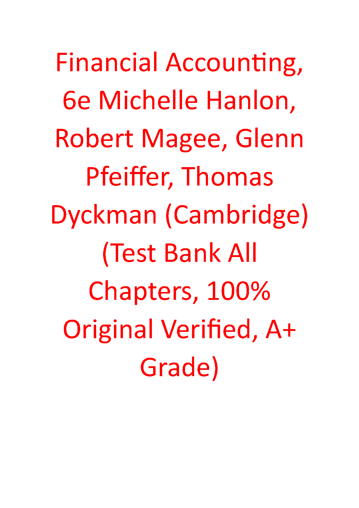Financial Accounting 6e by Michelle Hanlon, Robert Magee, Glenn Pfeiffer, Thomas Dyckman (Cambridge) - Test Bank Solutions Manual