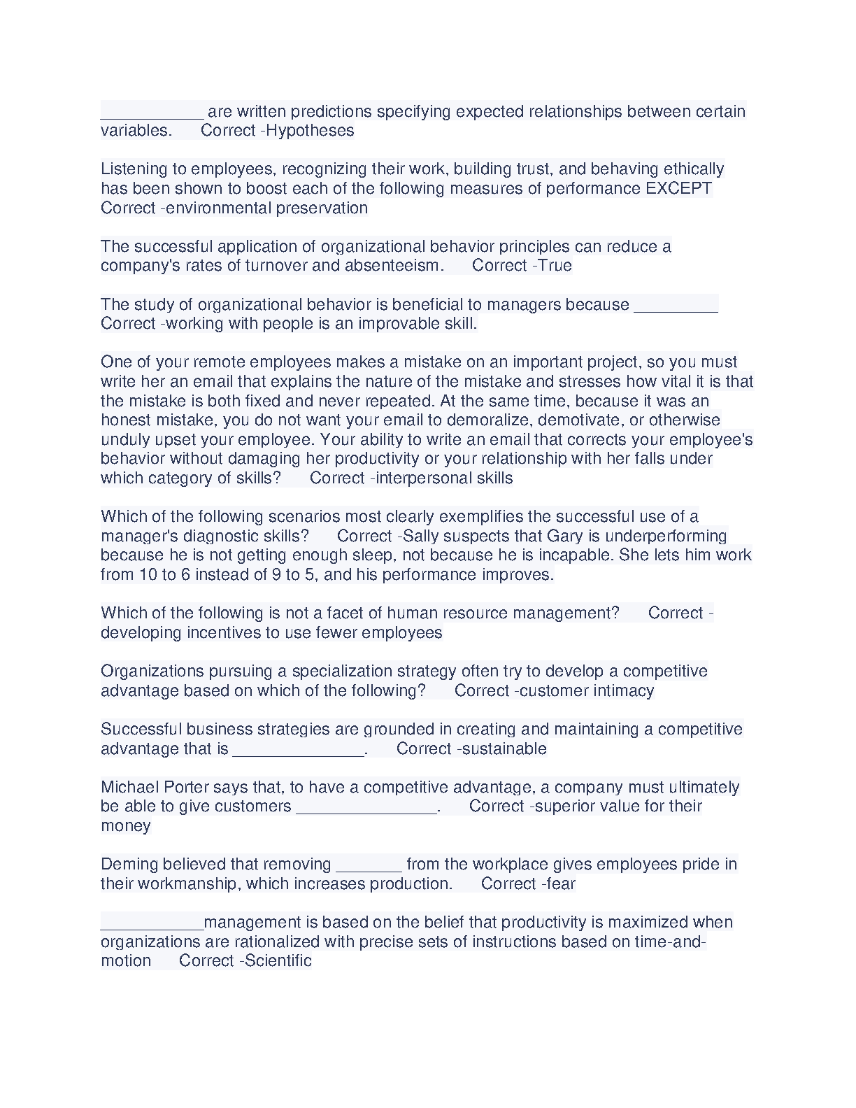 Ace your BUAD Exam 1 with these comprehensive practice questions covering all key concepts of organizational behavior, as taught by Stephen P. Robbins and Timothy A. Judge in the 19th edition of their textbook. This resource is ideal for students looking to grasp the essential principles and prepare thoroughly for their upcoming exam.