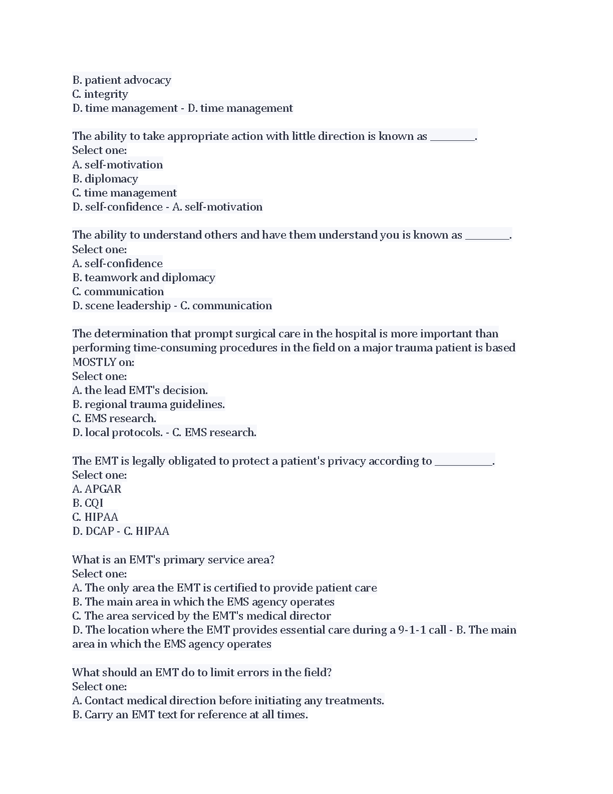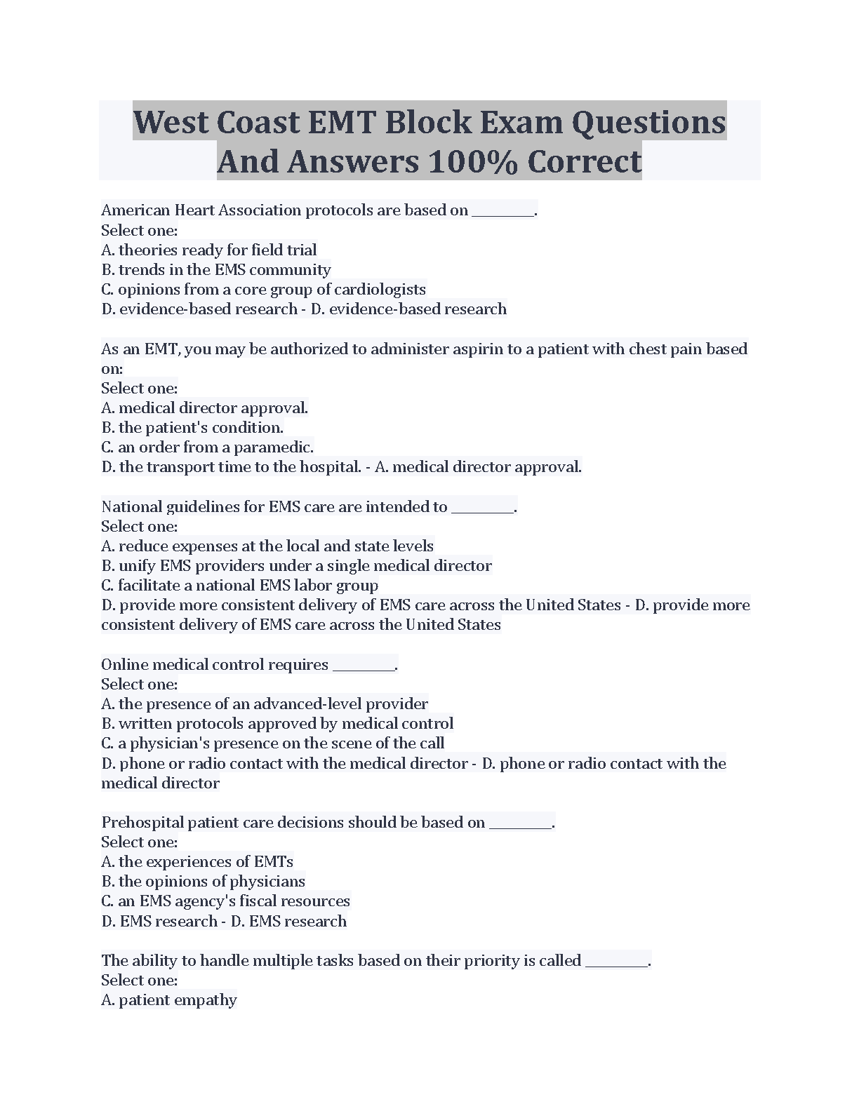 Ace your West Coast EMT Block Exam with this comprehensive study guide, packed with 100% accurate answers. Master all the essential concepts and practice with realistic exam-style questions. Don't risk a resit - guarantee your success with this ultimate preparation resource.
