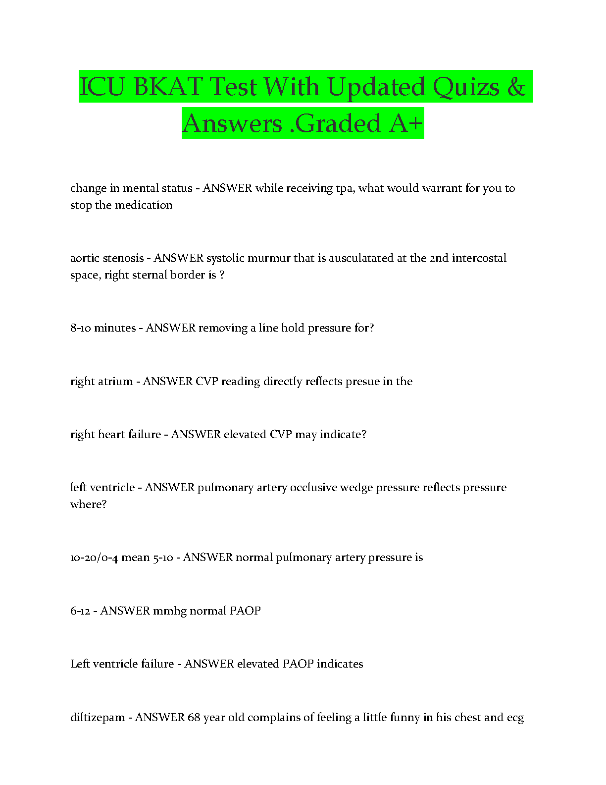 ICU BKAT Test With Updated Quizzes & Answers Graded A+