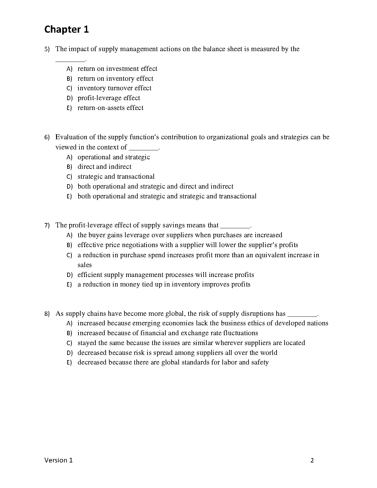 Get your hands on the latest edition of Purchasing and Supply Management Test Bank Answers by Fraser Johnson. This comprehensive resource is designed to help students achieve top marks on their first attempt, eliminating the need for resits. This reliable guide provides detailed answers and explanations to all questions in the textbook, ensuring a strong understanding of key concepts. Make studying effortless and pass with flying colors!