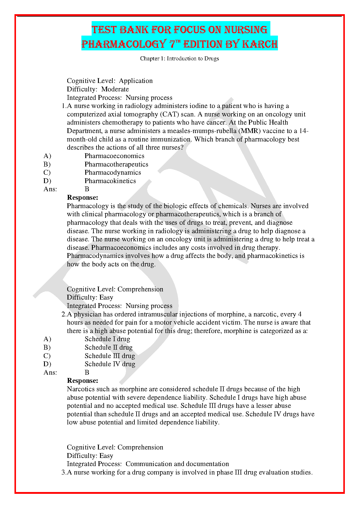 Get ready to ace your nursing pharmacology exams with this comprehensive Test Bank for Focus on Nursing Pharmacology 7th Edition by Karch. This resource provides a wealth of practice questions and answers, covering all the essential concepts in pharmacology, including drug classifications, mechanisms of action, adverse effects, and patient education. Enhance your understanding, identify areas for improvement, and boost your confidence to excel in your studies.
