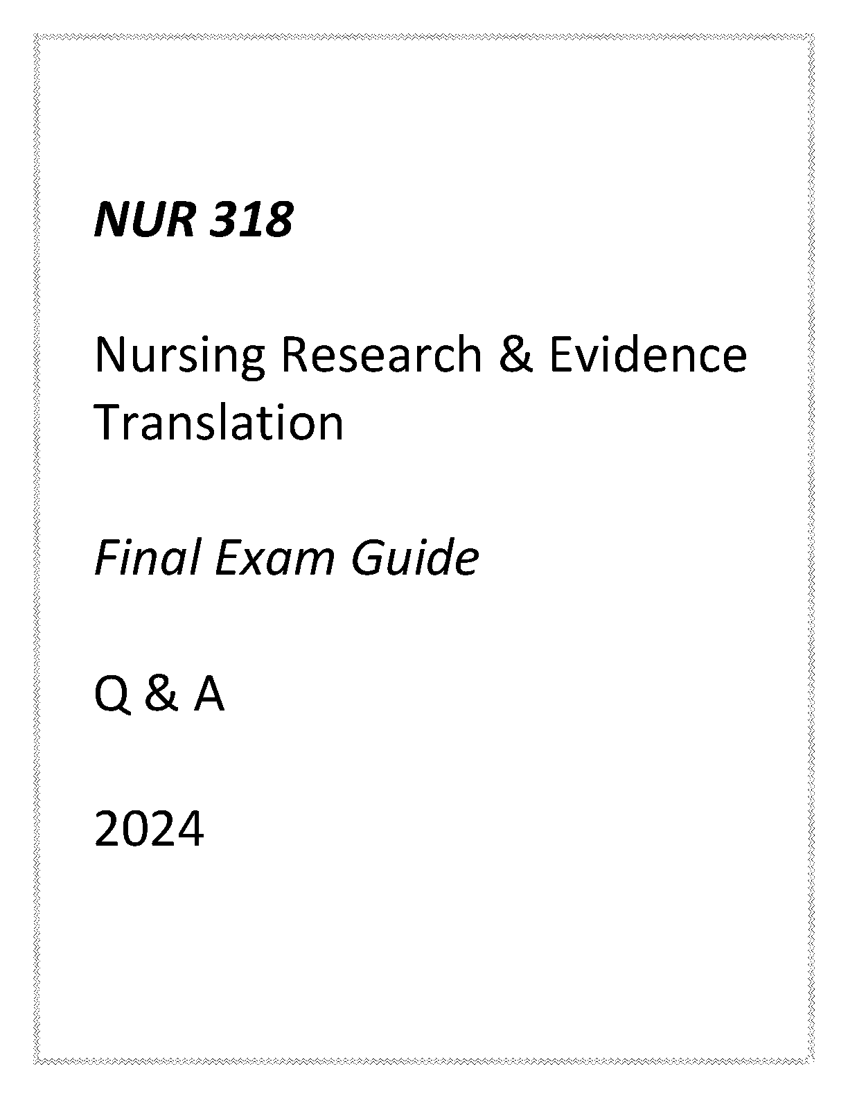 NUR 318 Nursing Research & Evidence Translation Final Exam Guide 2024: Ace Your Exam on the First Attempt!