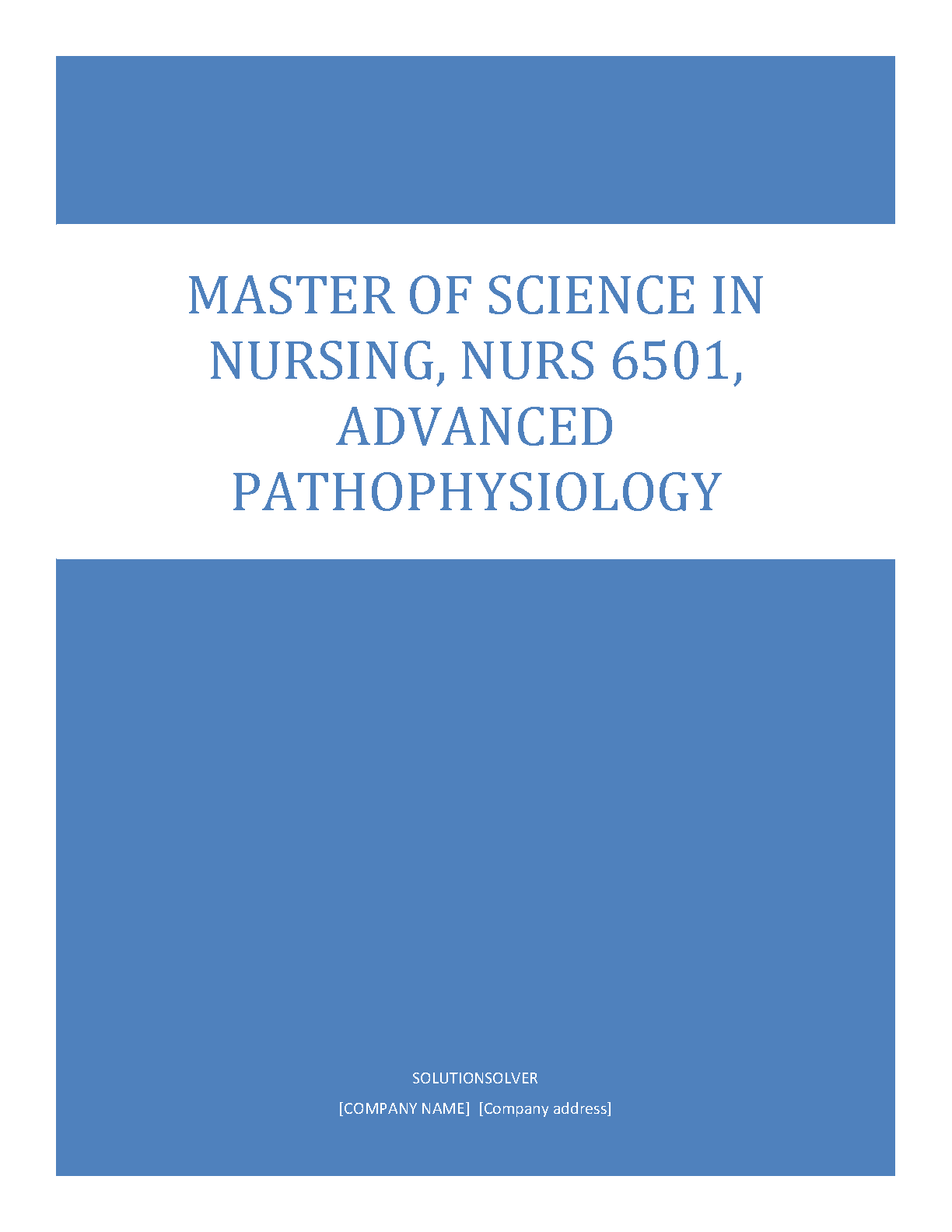 Master of Science in Nursing, NURS 6501, Advanced Pathophysiology: Latest Edition for 2024/2025
