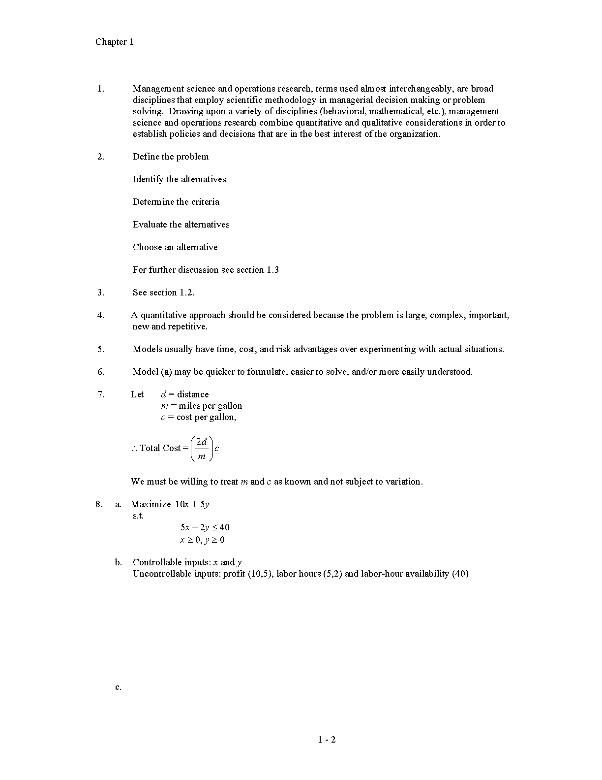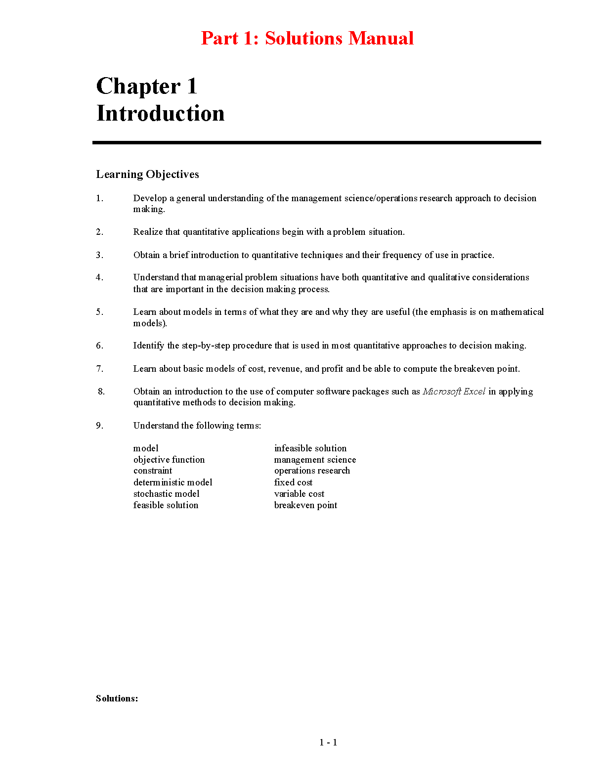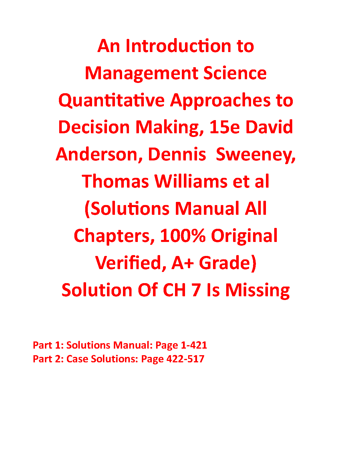 An Introduction to Management Science: Quantitative Approaches to Decision Making, 15e by David Anderson, Dennis Sweeney, Thomas Williams Solutions Manual - Guaranteed A+