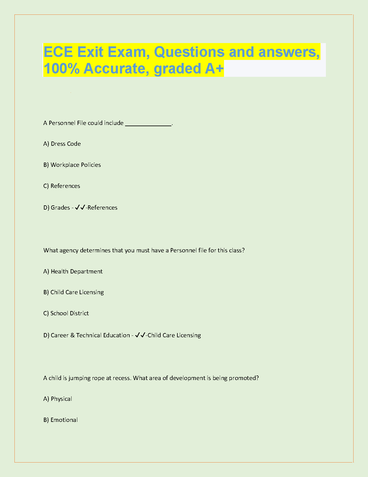 ECE Exit Exam Questions and Answers, 100% Accurate, Graded A+