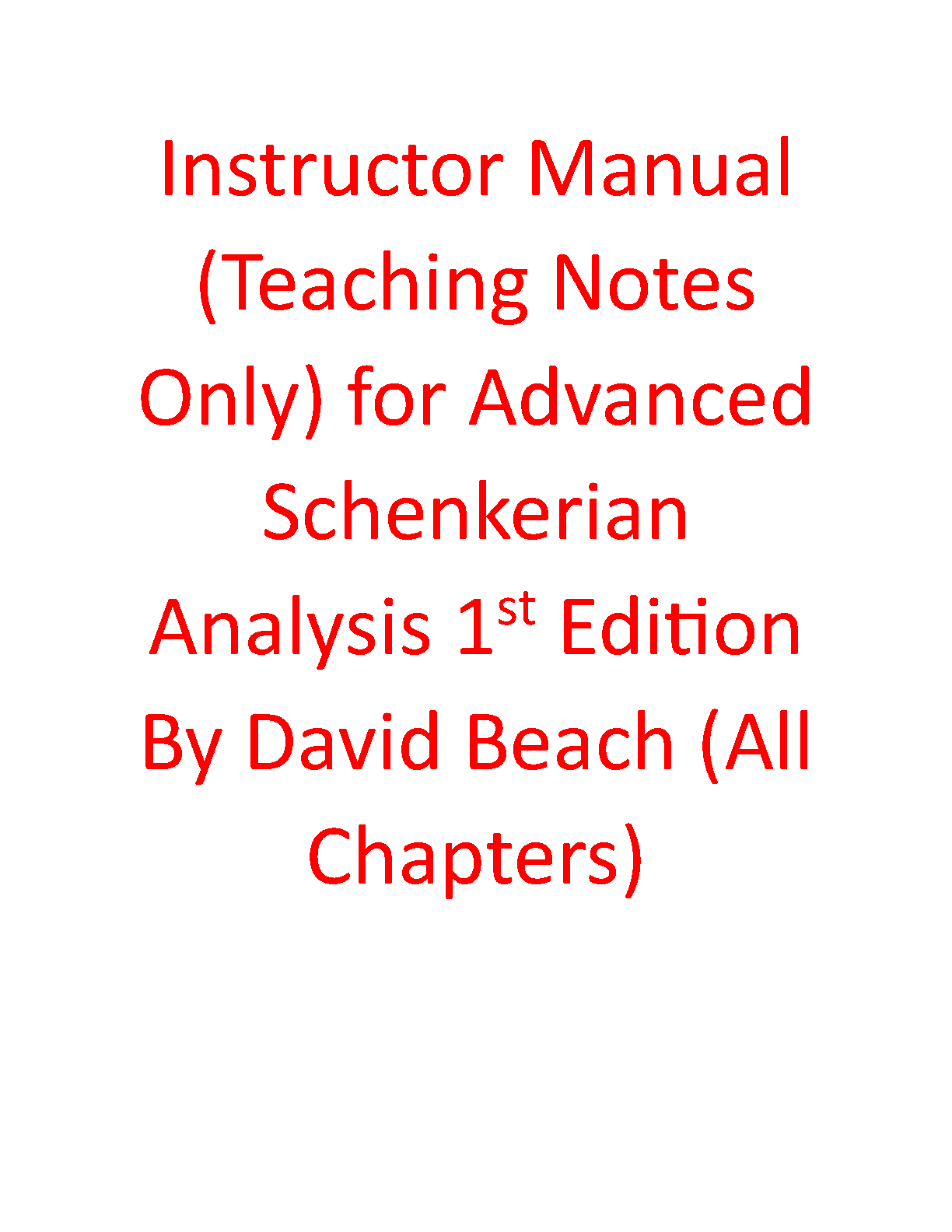 Advanced Schenkerian Analysis 1st Edition Instructor Manual by David Beach - Teaching Notes for All Chapters