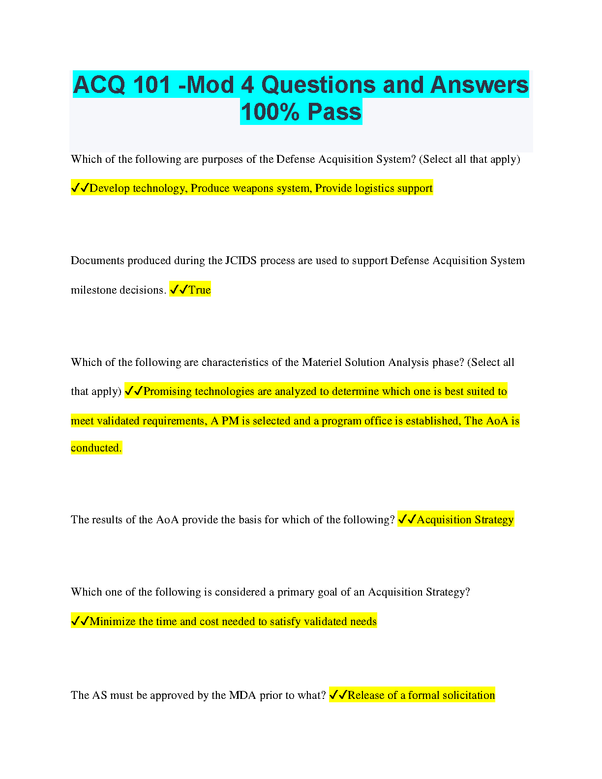 ACQ 101 - Mod 4 Questions and Answers 100% Pass - 2024/2025 Edition