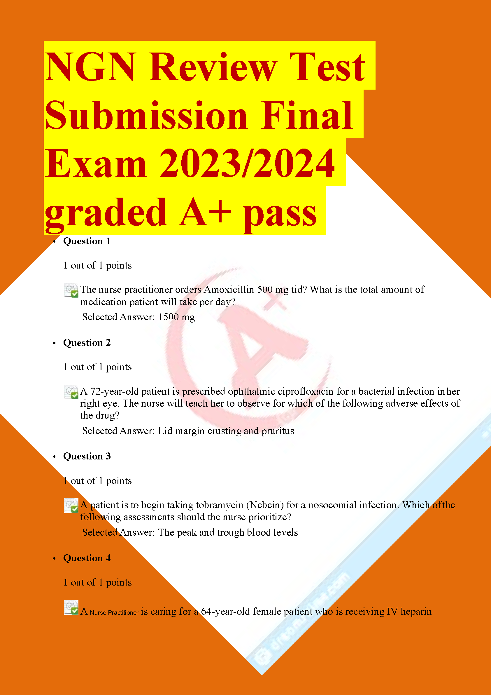 NGN Review Test Submission Final Exam 2023/2024 Graded A+ Pass - Ace Your Exam On The First Attempt