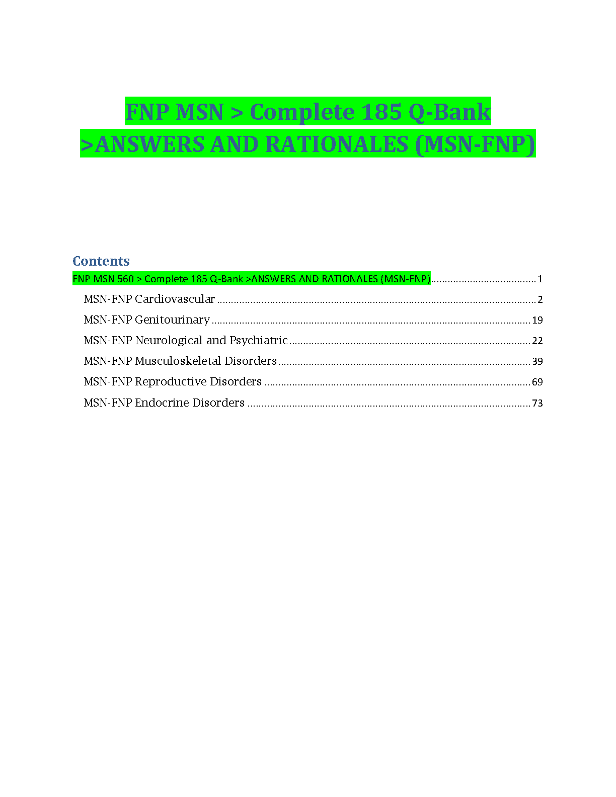 FNP MSN 560 Complete 185 Q-Bank Answers and Rationales (MSN-FNP) by Joyce LeFever Kee, Karen Holsti & Mary Ann Hoekelman