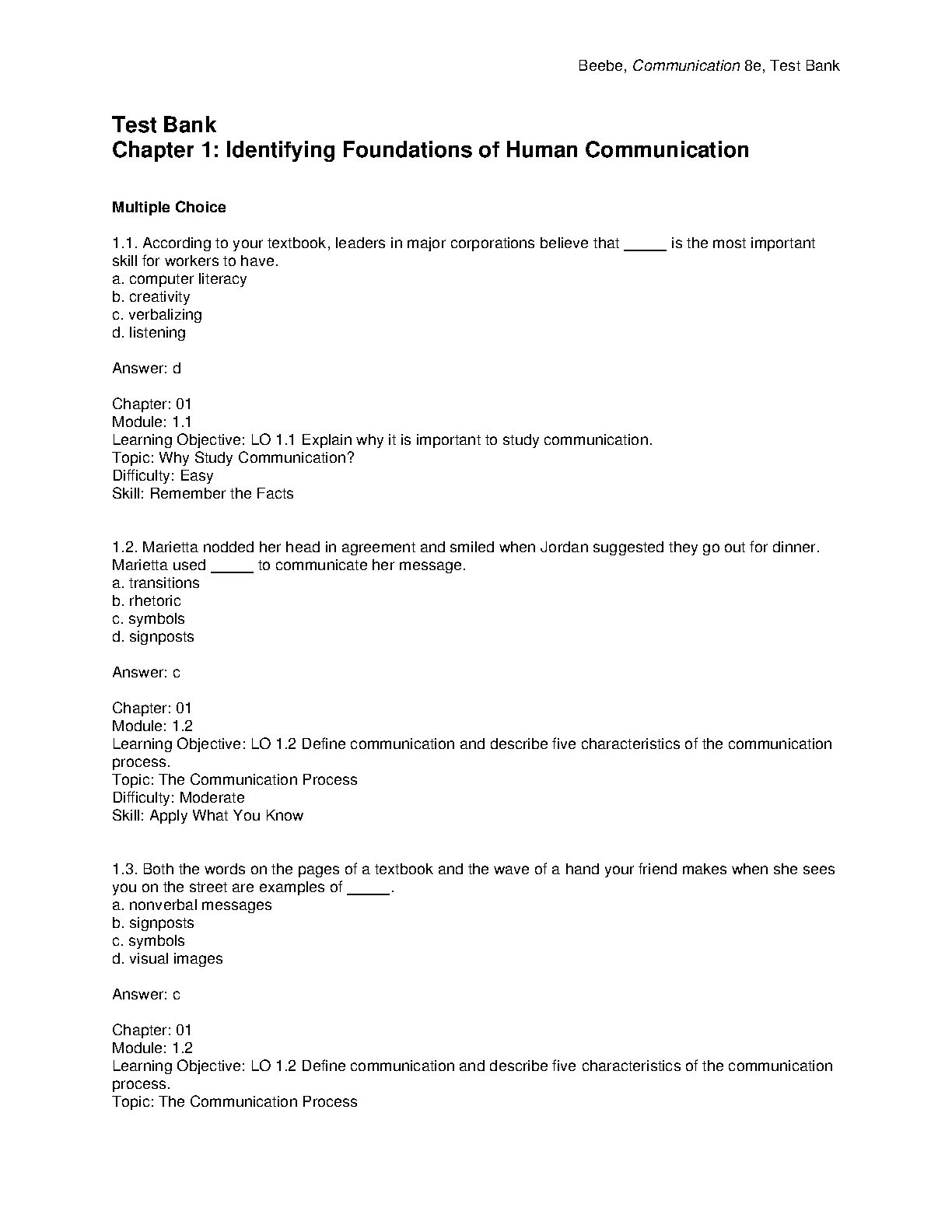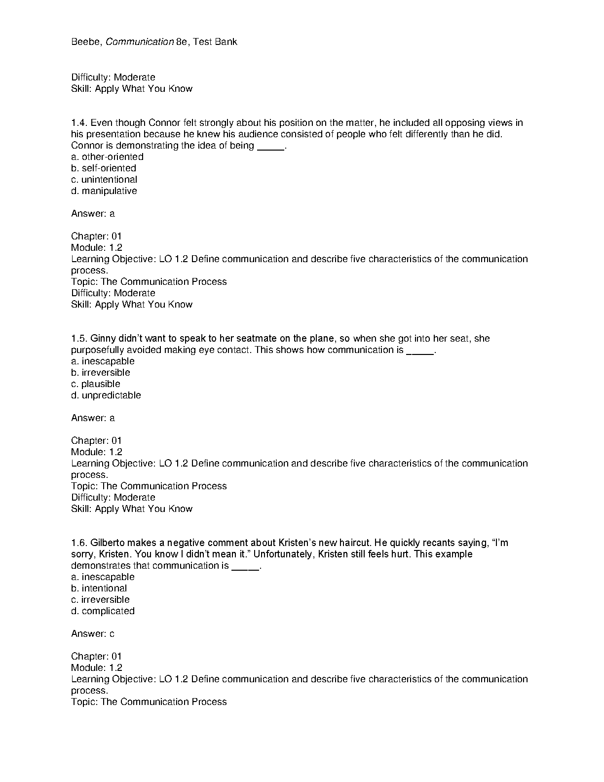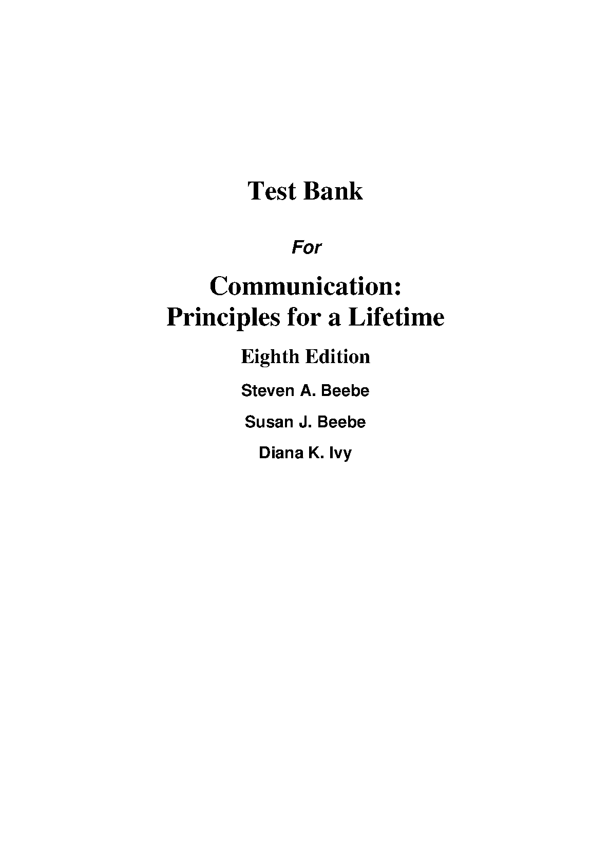 Test Bank for Communication: Principles for a Lifetime, 8th Edition by Steven A. Beebe, Susan J. Beebe, and Diana K. Ivy