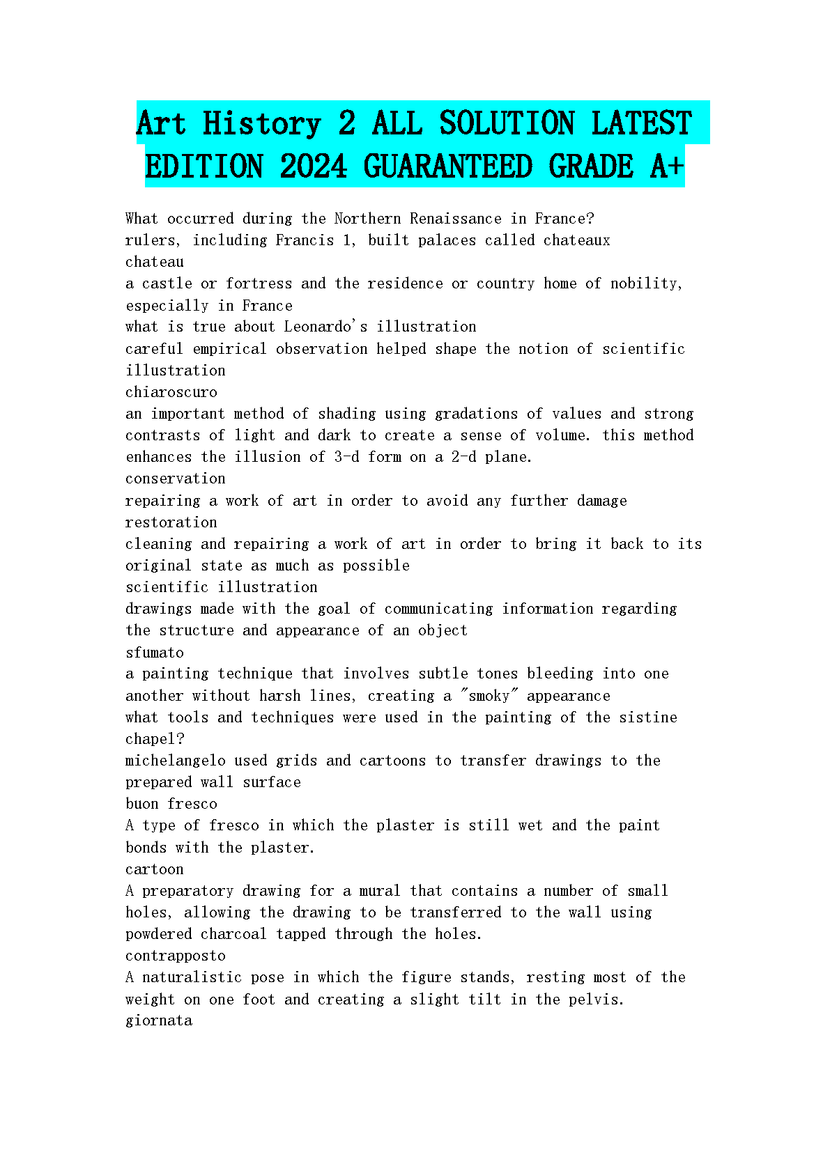 Art History 2 All Solution Latest Edition 2024 Guaranteed Grade A+ by Janson, H.W., Janson, Anthony F.