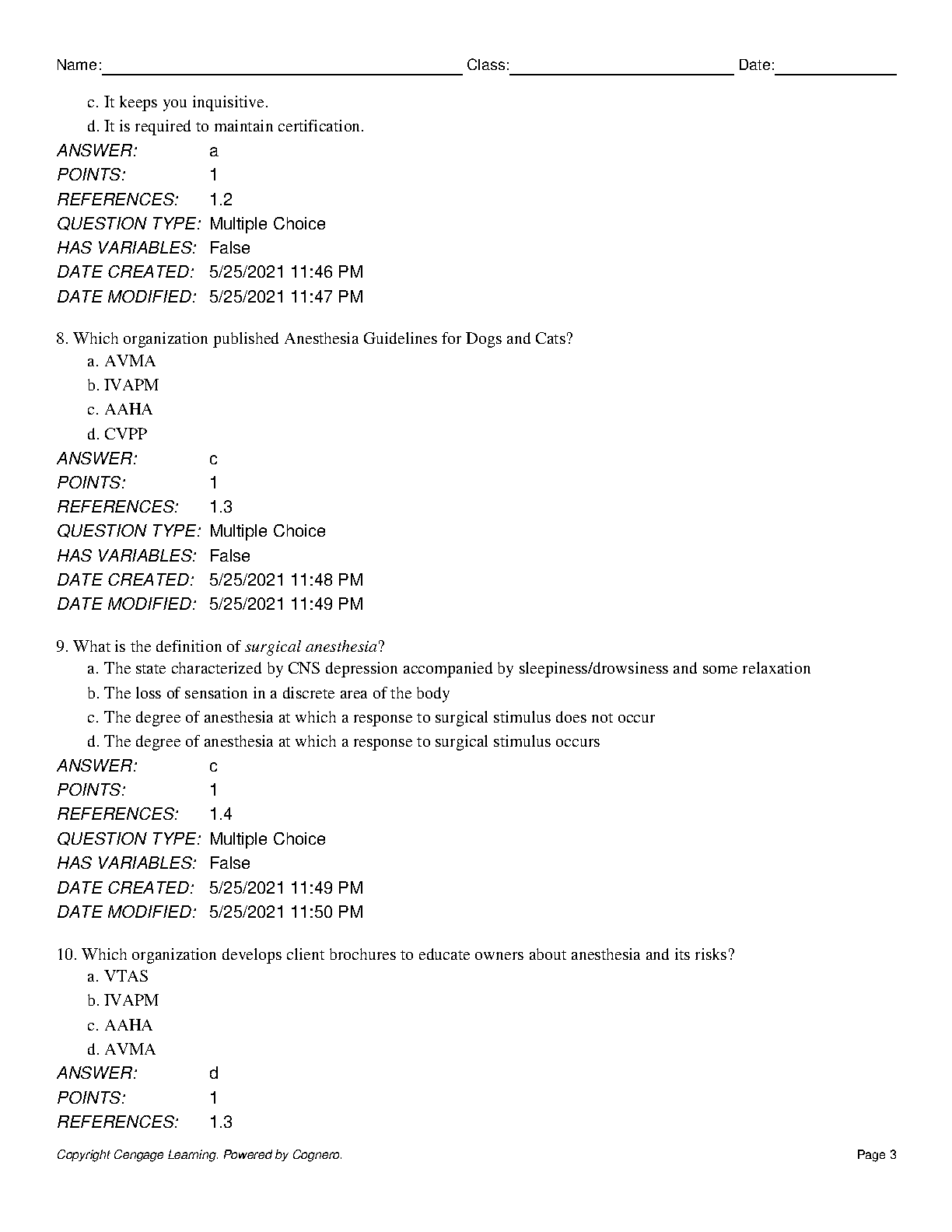 This Test Bank provides a comprehensive collection of practice questions for the 1st edition of Anesthesia, Analgesia, and Pain Management for Veterinary Technicians by Janet Amundson Romich.