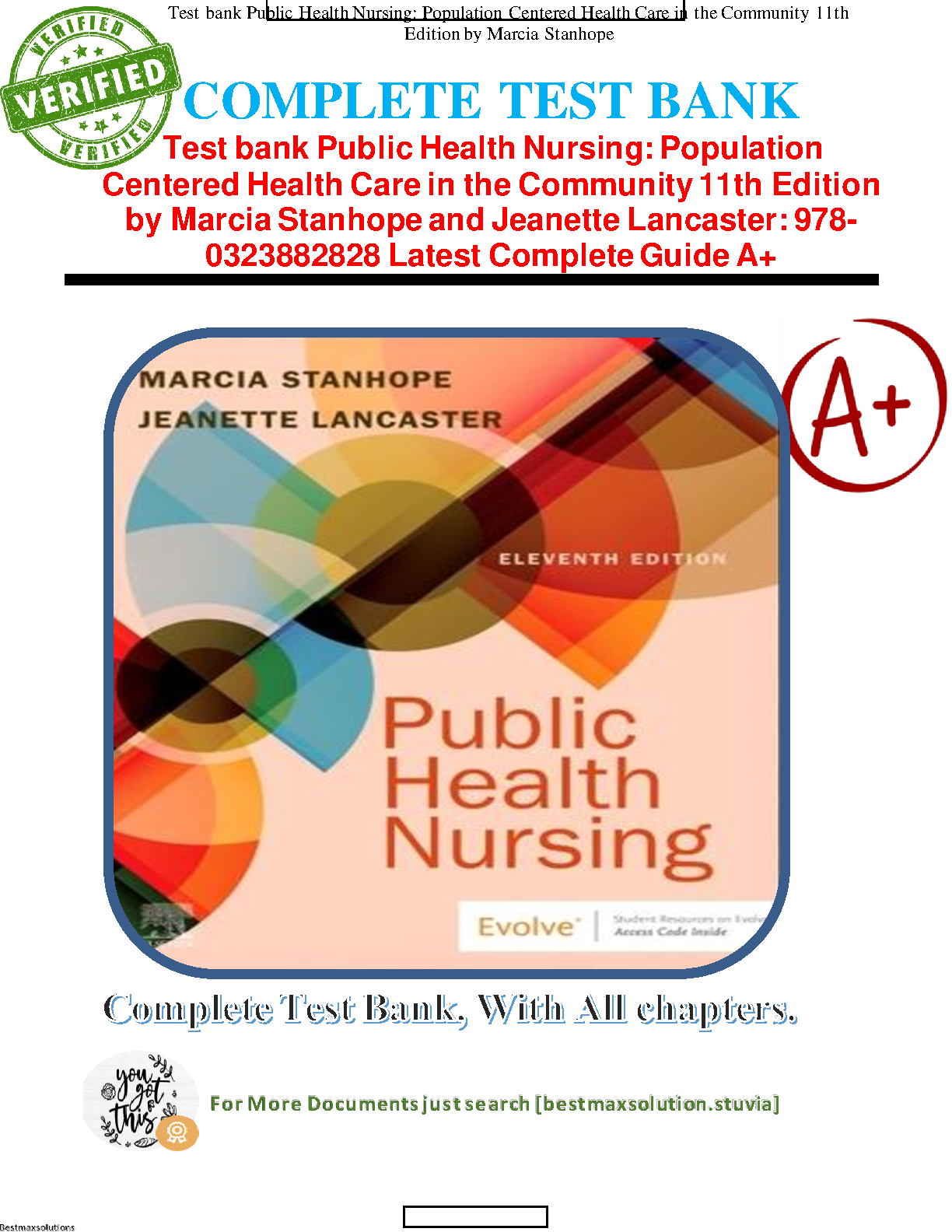Ace your Public Health Nursing exams with this comprehensive Test Bank for the 11th edition by Marcia Stanhope and Jeanette Lancaster. Get access to all chapters and test your knowledge with the latest practice questions. Achieve a high score on your first attempt and avoid resits with this essential study resource.