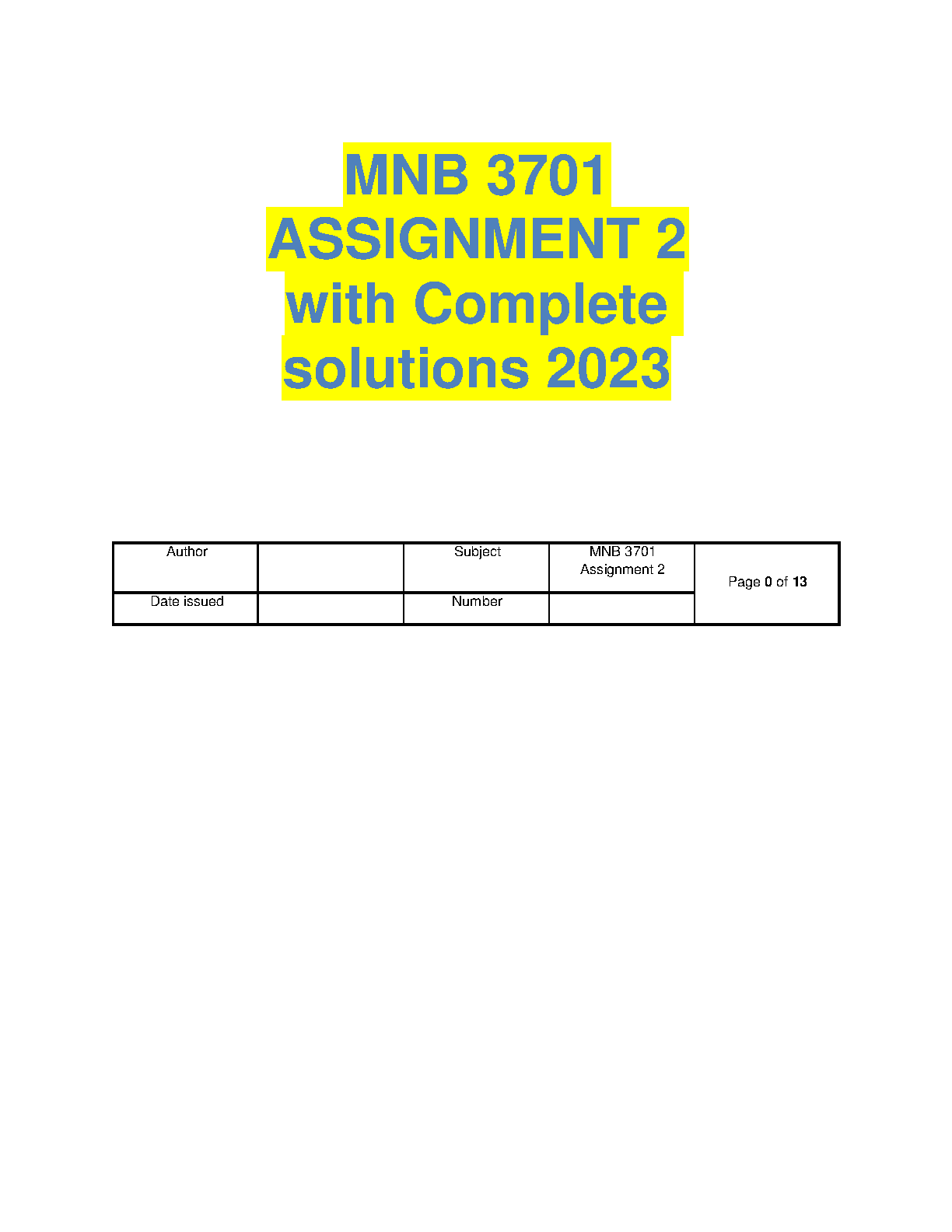 Get ahead of the game with this complete solutions guide for MNB 3701 Assignment 2. This resource is packed with answers and explanations to help you master the concepts and pass your exam with flying colors. Save time and effort with this comprehensive study aid.