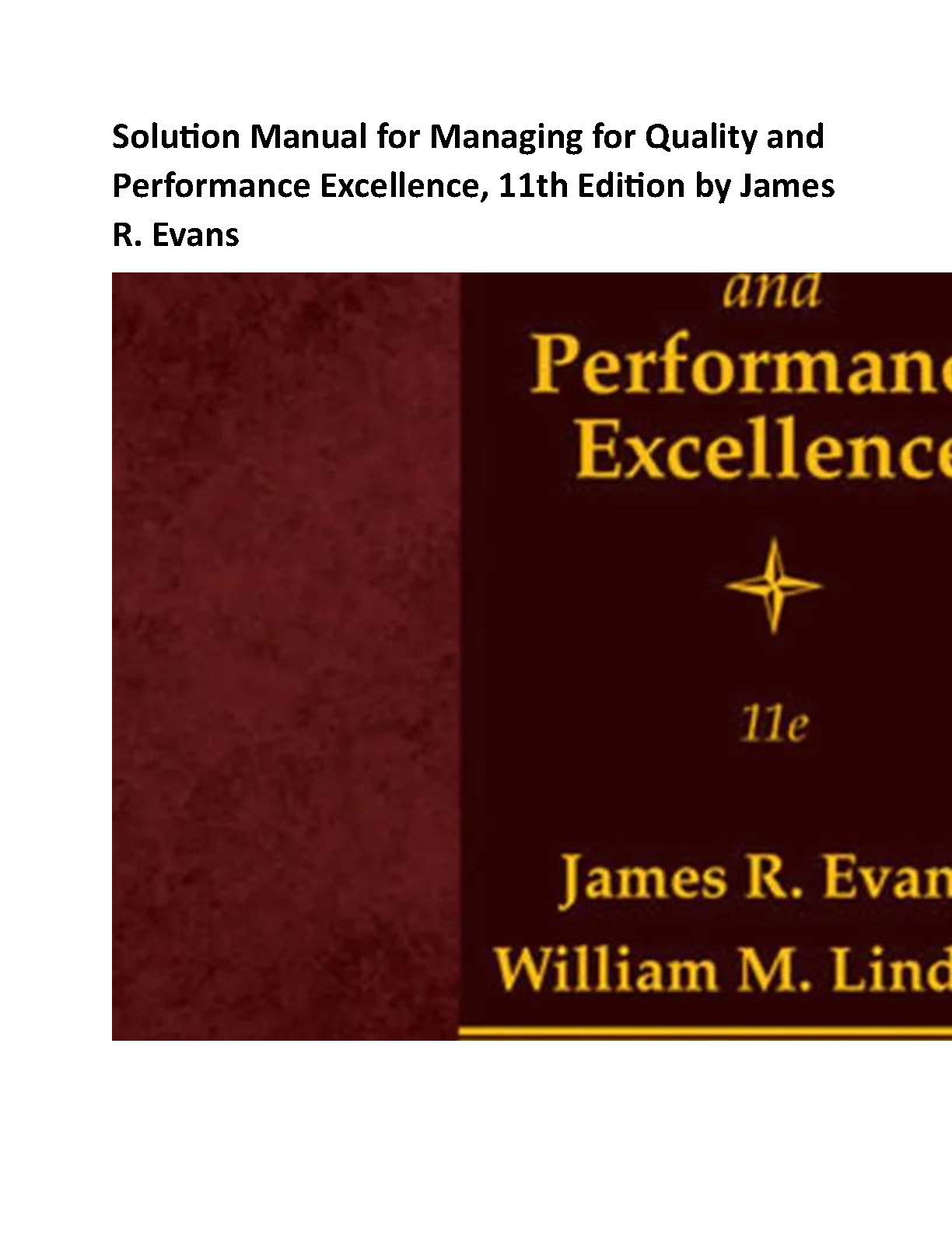 Solution Manual for Managing for Quality and Performance Excellence, 11th Edition by James R. Evans and William M. Lind